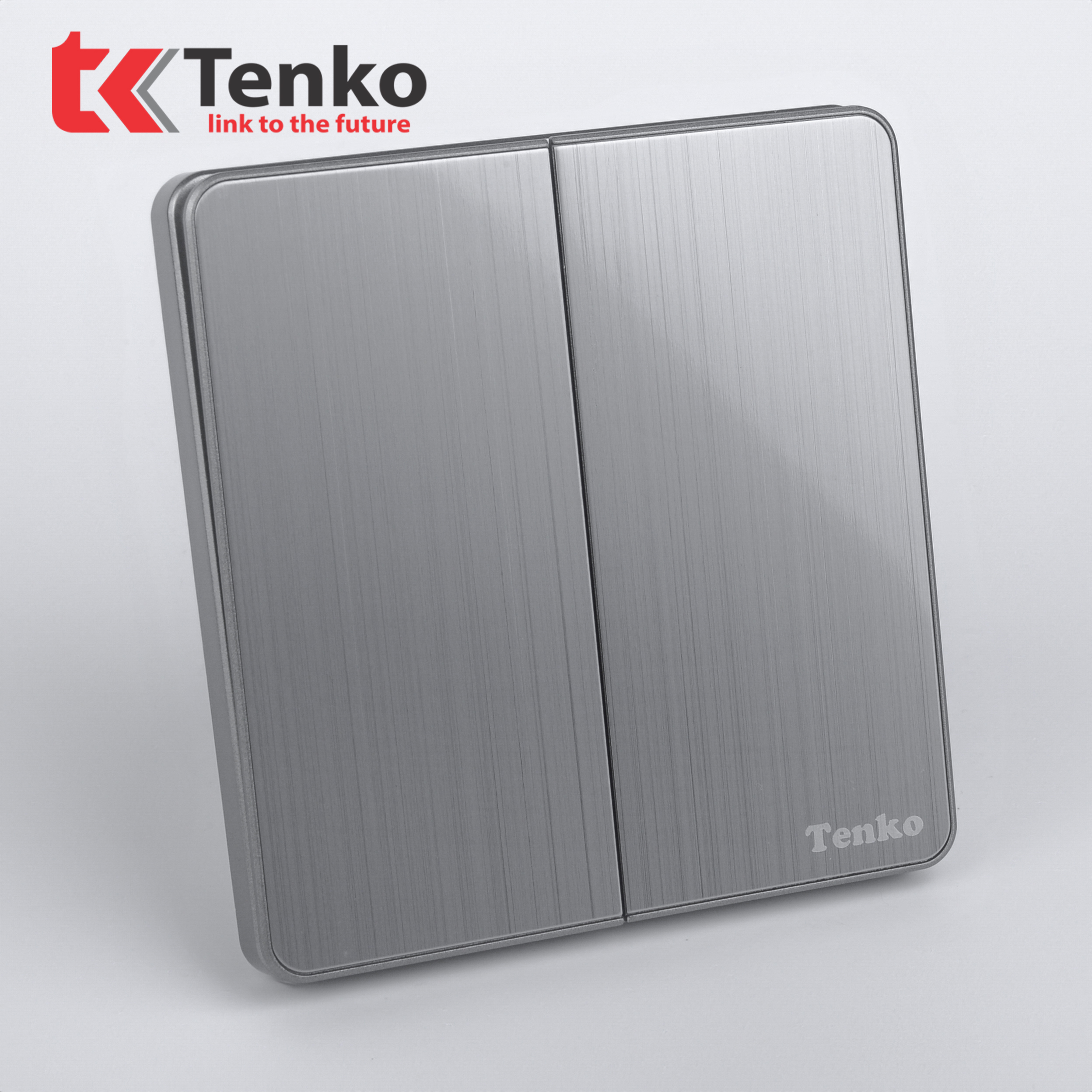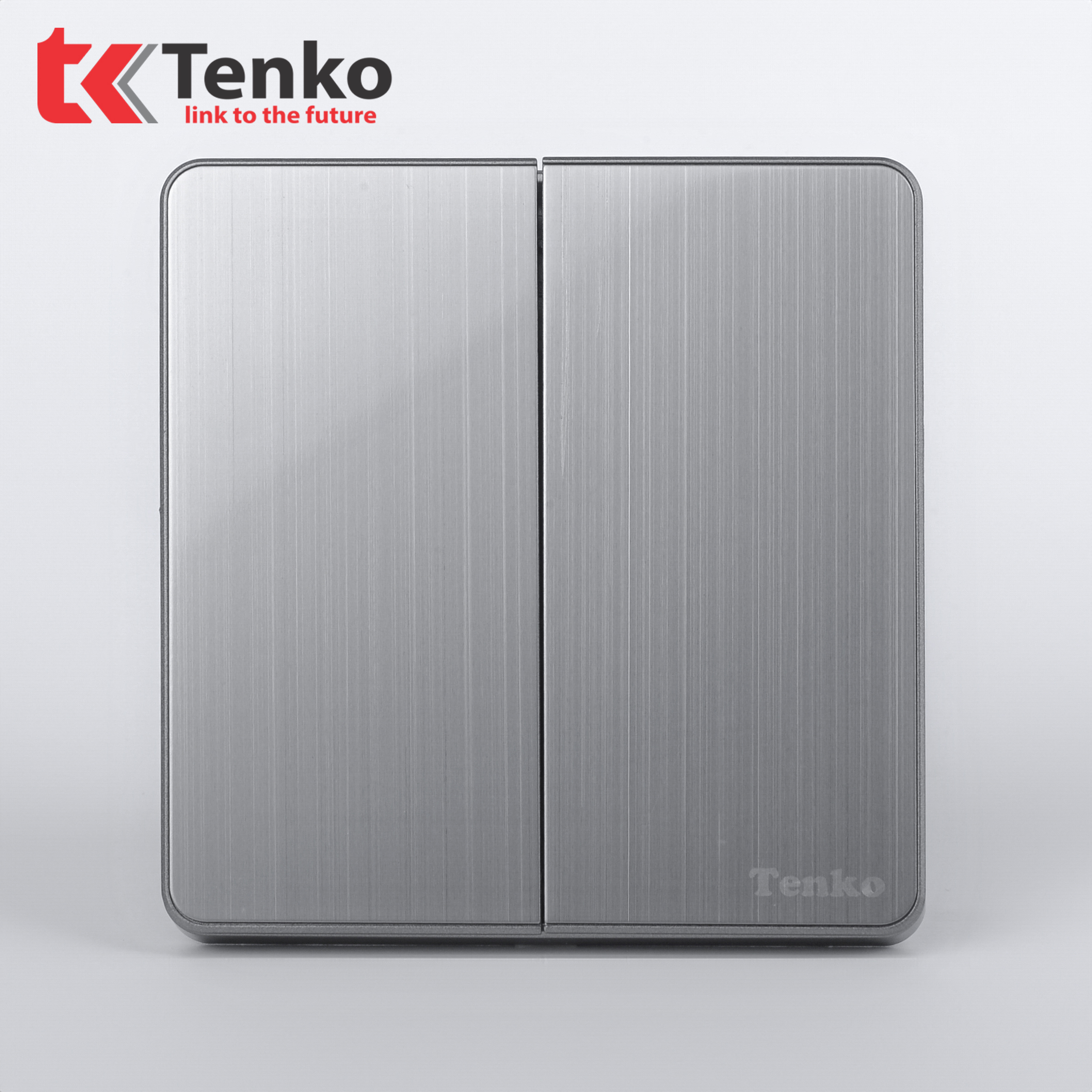 Công Tắc 2 Nút Tràn Viền Hợp Kim Cao Cấp Màu Ghi Xám Chính Hãng Tenko TK-DA-02