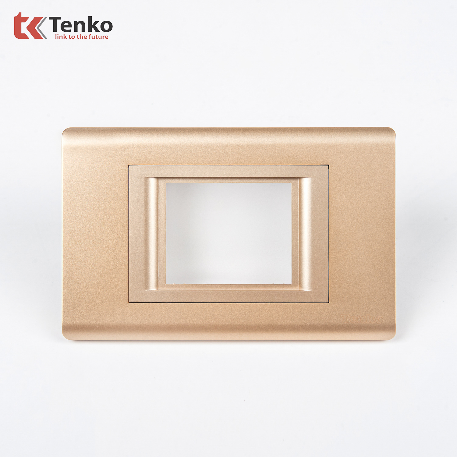 - Thiết Kế Tinh Tế: Bề mặt hoàn thiện bằng nhựa PC cao cấp, mang sắc Vàng Gold lấp lánh và trang nhã. Màu sắc này dễ dàng đồng bộ với các công tắc và ổ cắm dòng TK-C25 khác của Tenko
