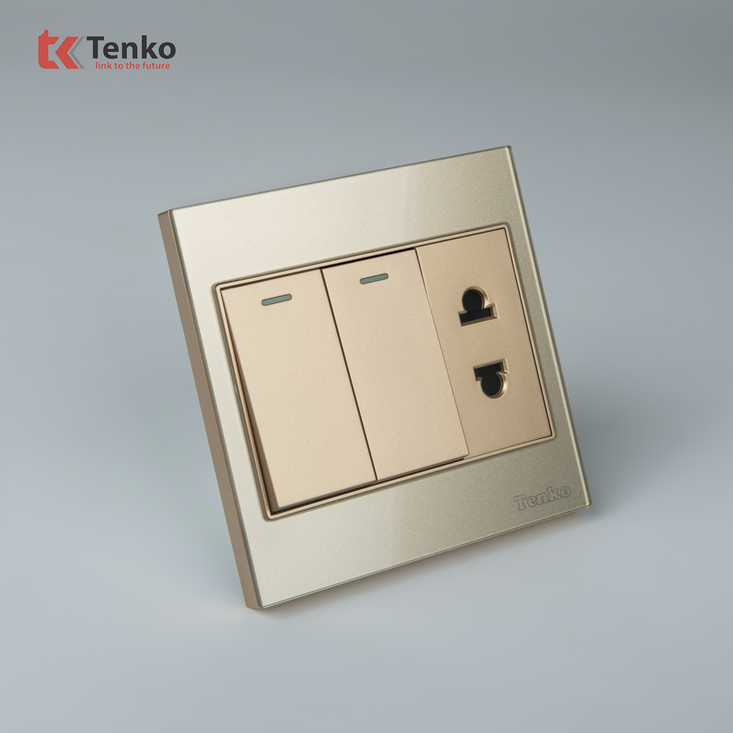 Ổ Cắm, Công Tắc Mặt Kính Cường Lực Tenko TK-V18-027 – Giải Pháp Điều Khiển Điện Hiện Đại, Bền Bỉ Màu Vàng