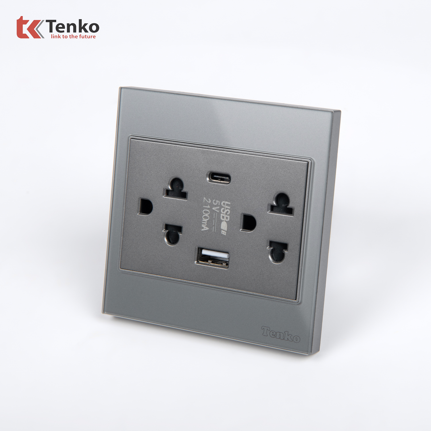 Trong kỷ nguyên công nghệ, việc tối ưu hóa các điểm cấp nguồn không chỉ dừng lại ở các ổ cắm truyền thống mà còn cần tích hợp các cổng sạc nhanh cho thiết bị di động. Tenko TK-V18-045 là sự kết hợp đột phá giữa ổ cắm 3 chấu đa năng và các cổng sạc USB, Type C trên nền mặt kính cường lực xám ghi, mang đến sự tiện nghi tuyệt đối cho người dùng hiện đại.