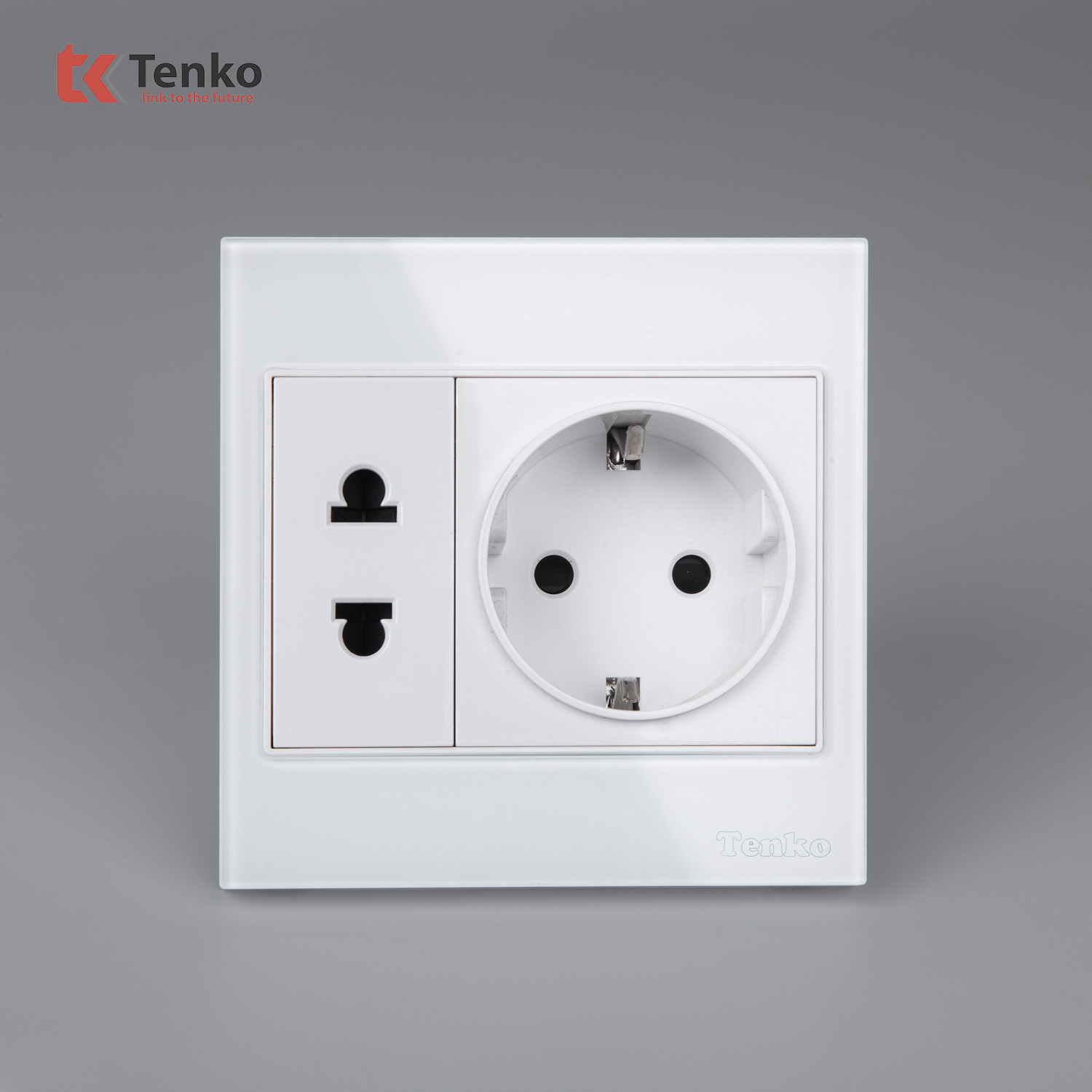 Ổ Cắm Điện Đôi 2 Chấu Chuẩn Đức Mặt Kính Cường Lực Tenko TK-V18-059 – Giải Pháp Điều Khiển Điện Hiện Đại, Bền Bỉ