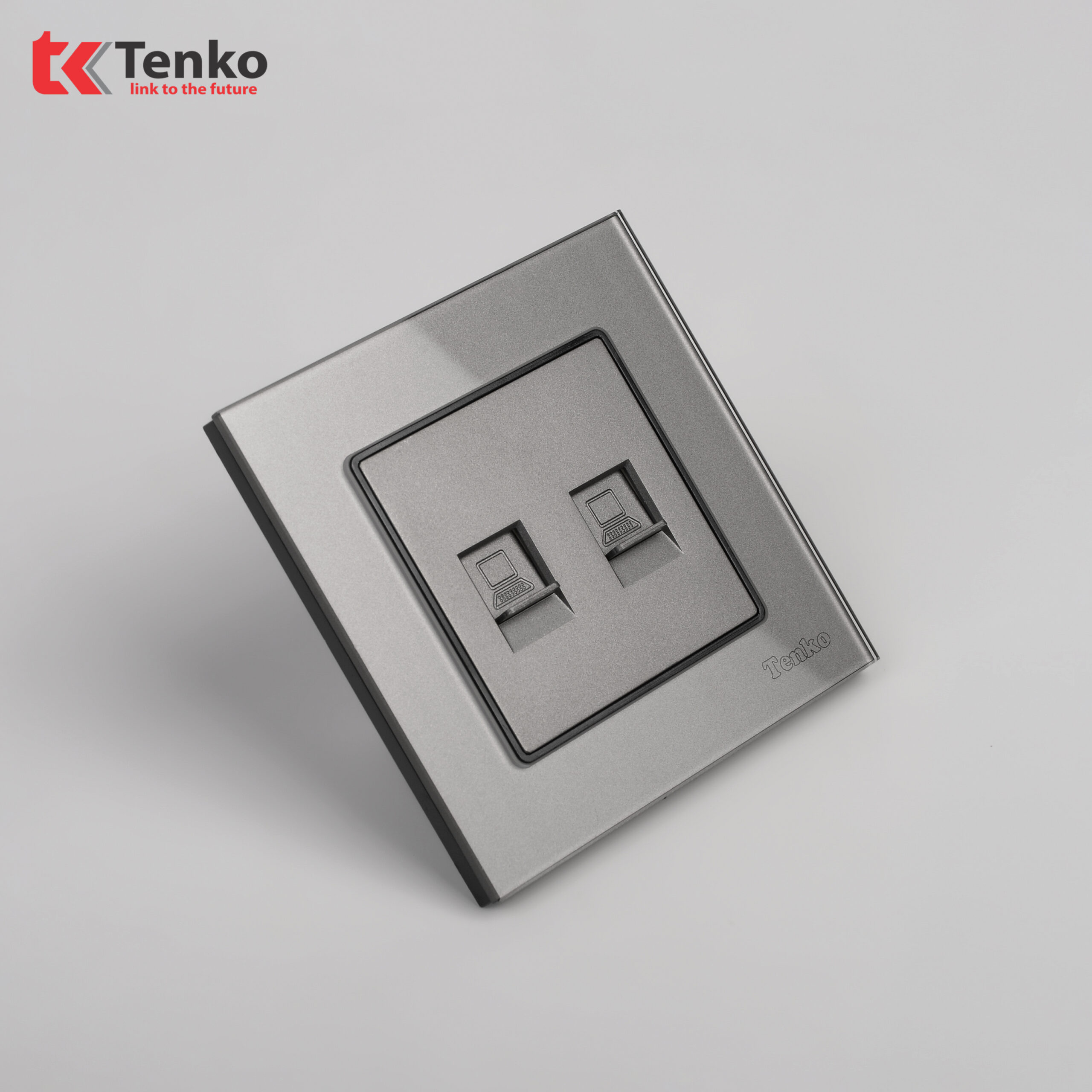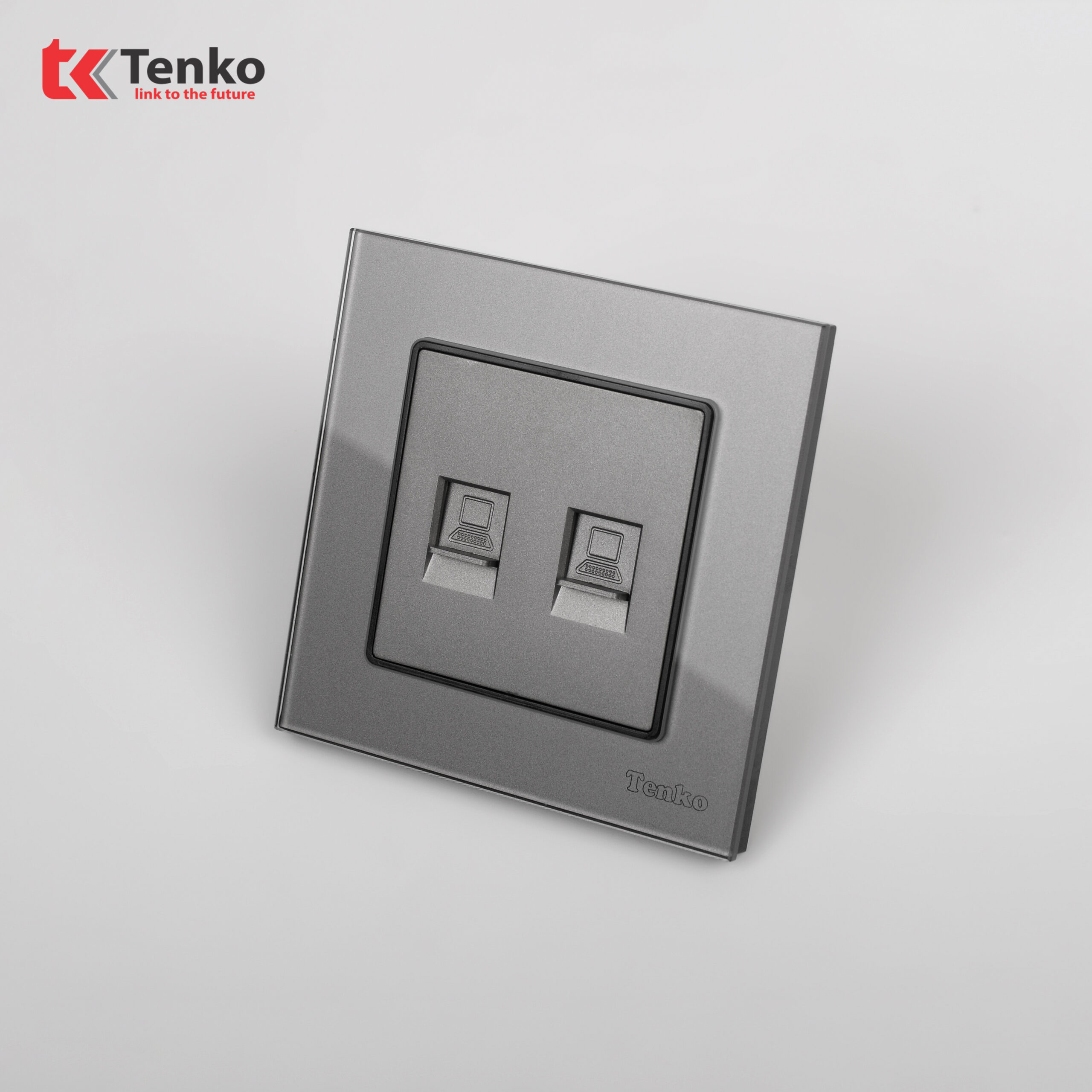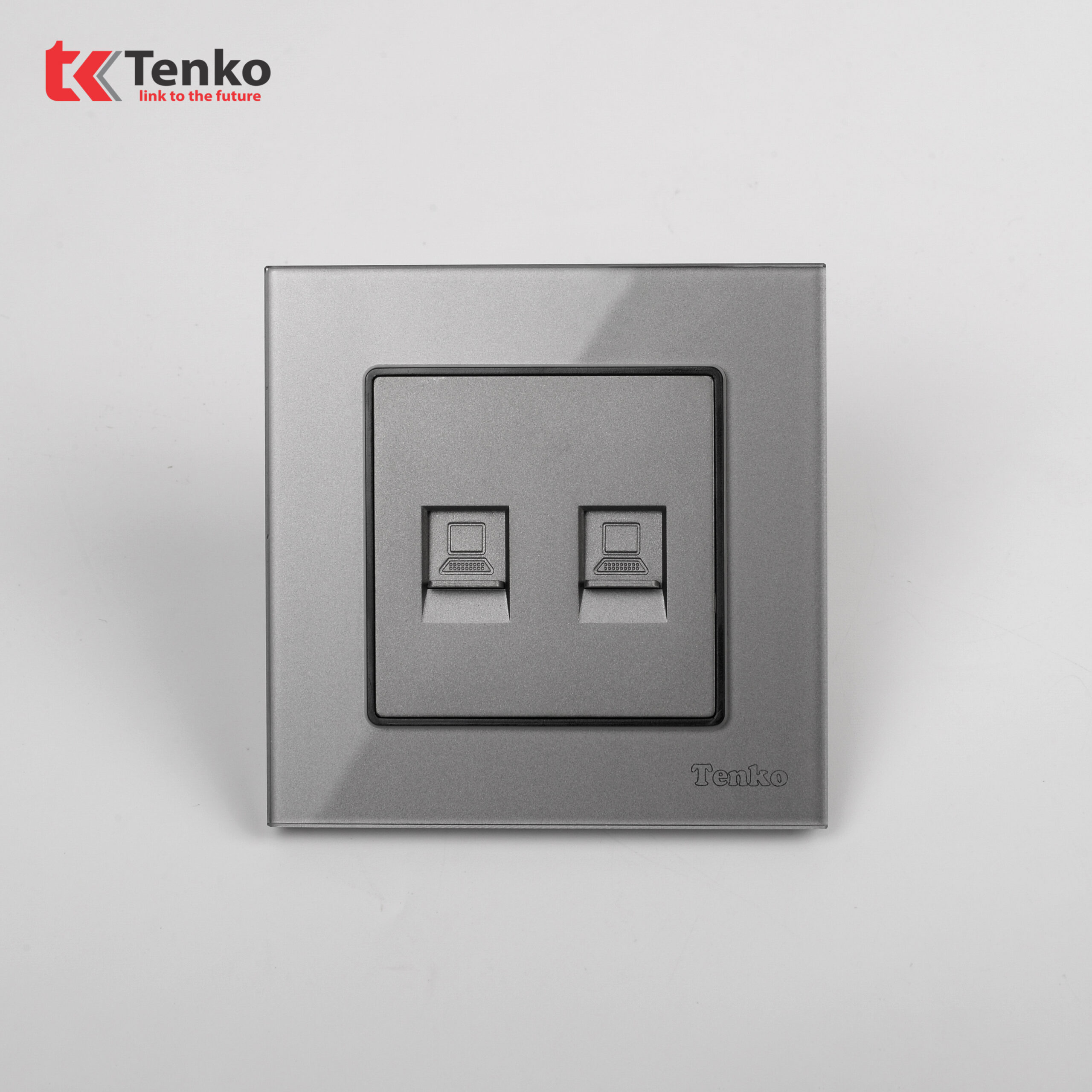 2 Ổ Cắm Mạng Mặt Kính Cường Lực Tenko TK-F71D-52 Xám