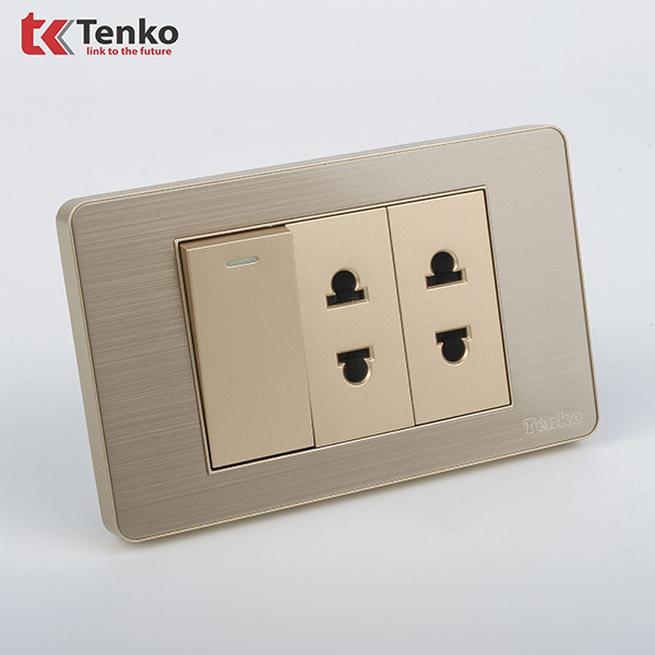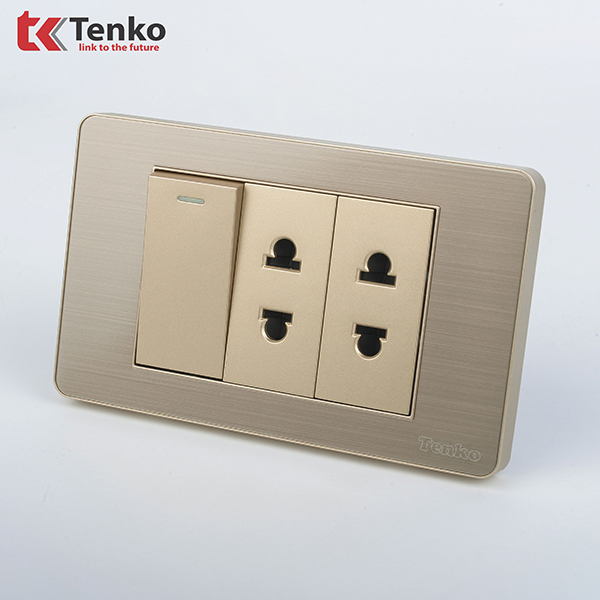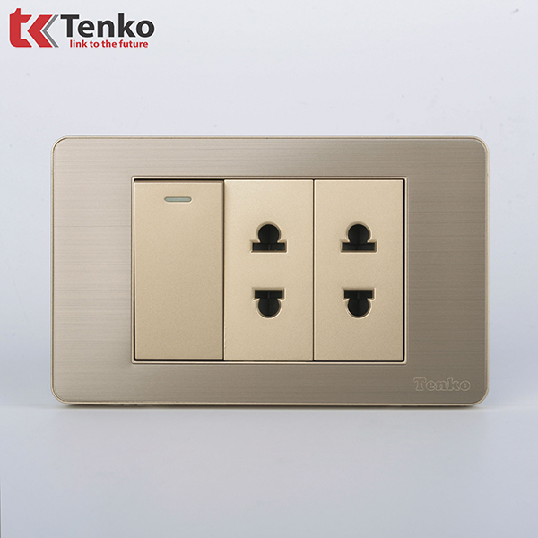Bộ Công Tắc Ổ Cắm Âm Tường Mặt Kim Loại Bo Viền Màu Vàng TENKO TK-C7G-025 với thiết kế đa dạng với khả năng tùy biến cao, mang lại sự hài hòa. Sang trọng cho mọi không gian.