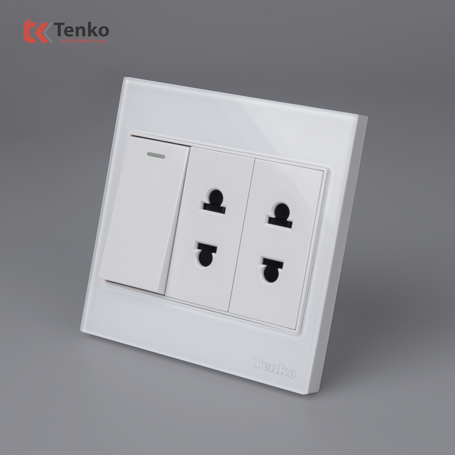 Bộ Công Tắc Ổ Cắm Điện Mặt Kính Cường Lực Tenko TK-V18-025 – Giải Pháp Điều Khiển Điện Hiện Đại, Bền Bỉ