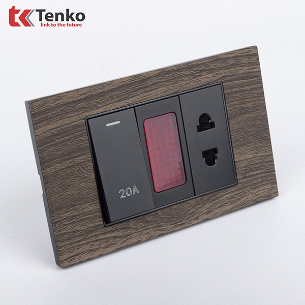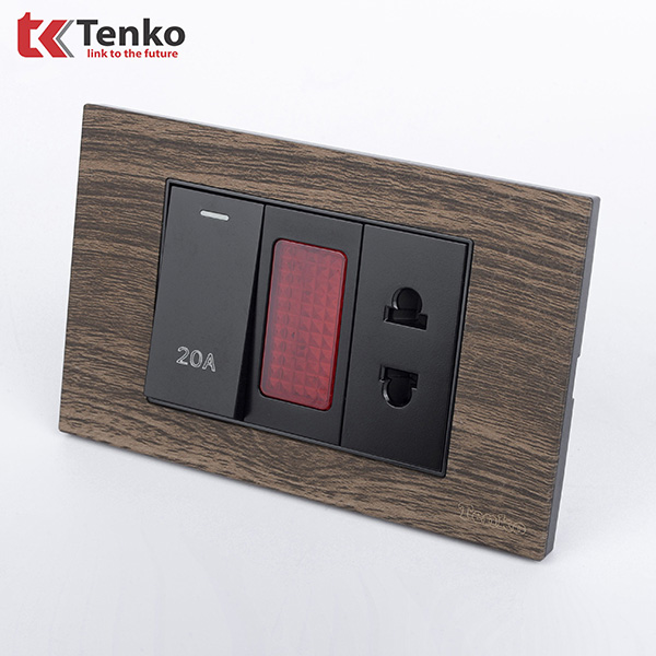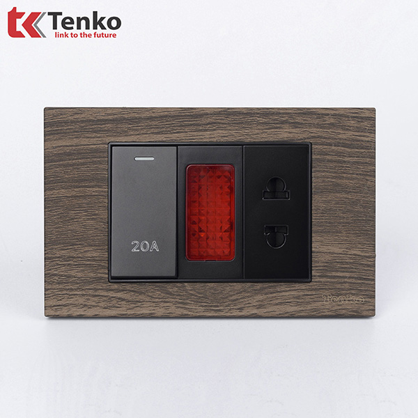 Bộ Ổ Cắm – Công Tắc 2 Cực 20A Cho Bình Nóng Lạnh – Điều Hoà Mặt Vân Gỗ TK-C6A-080