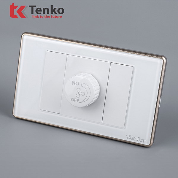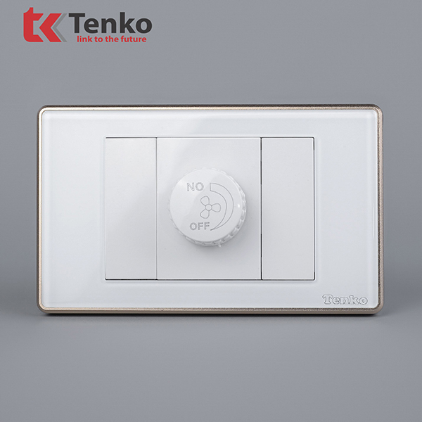 Ưu điểm nổi bật của dòng sản phẩm Chiết áp quạt mặt kính trắng viền vàng Tenko TK-C18W-086 là thiết kế đẹp – chắc chắn – độ bền cao. Thiết kế cũng rất tinh tế, được đánh giá là dòng sản phẩm có thiết kế đa dạng, phù hợp với mọi không gian lắp đặt.