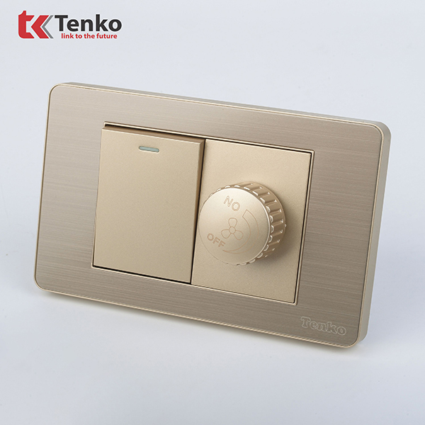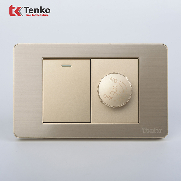 Chiết Áp Quạt Âm Tường+Công Tắc Mặt Kim Loại Cao Cấp TENKO TK-C7G-087 Vàng
