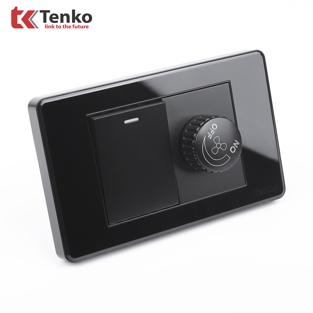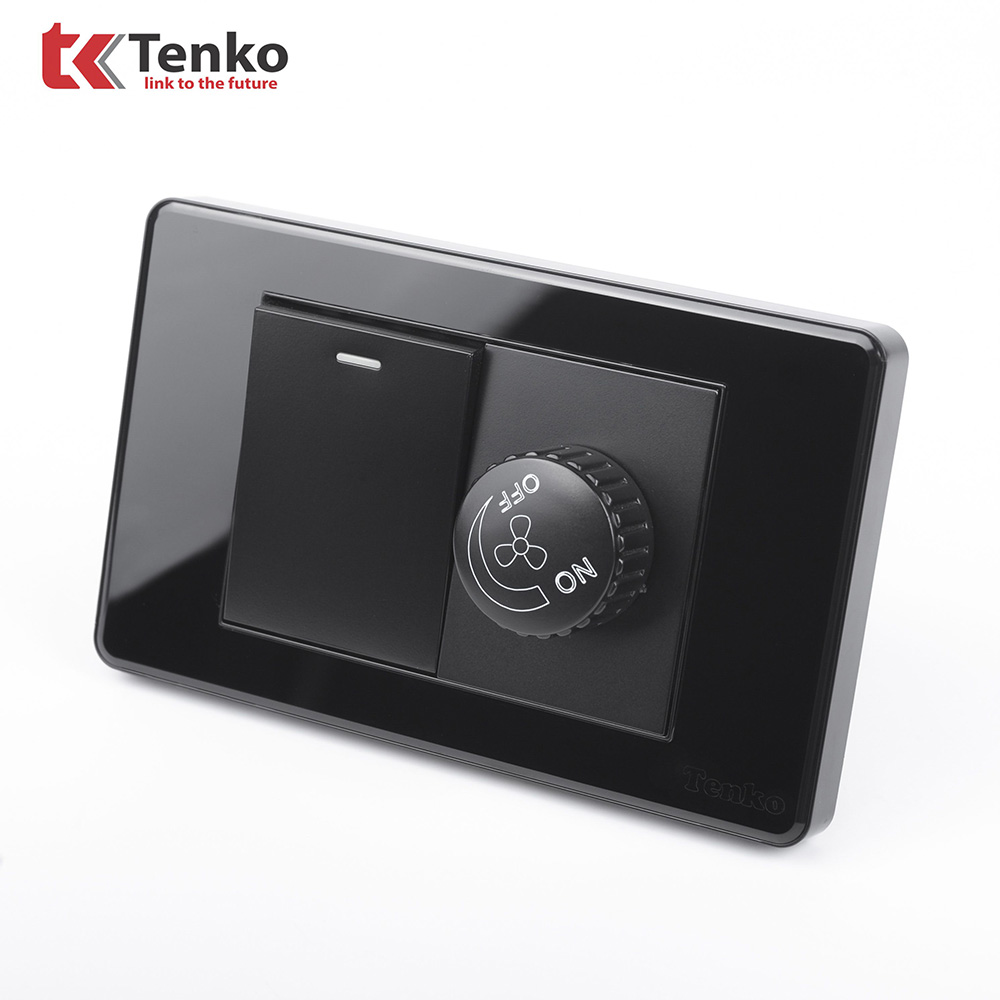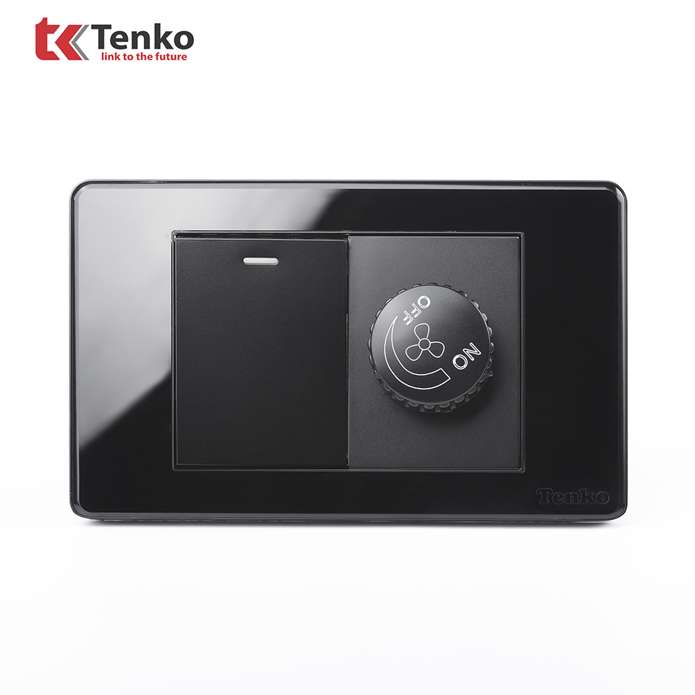 Chiết Áp Quạt Âm Tường+Công Tắc Mặt Nhựa Epoxy Cao Cấp TENKO TK-C9-087 ĐEN