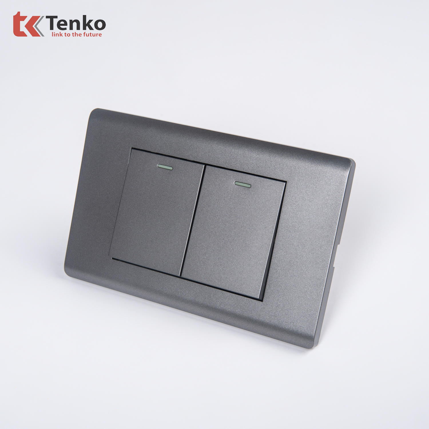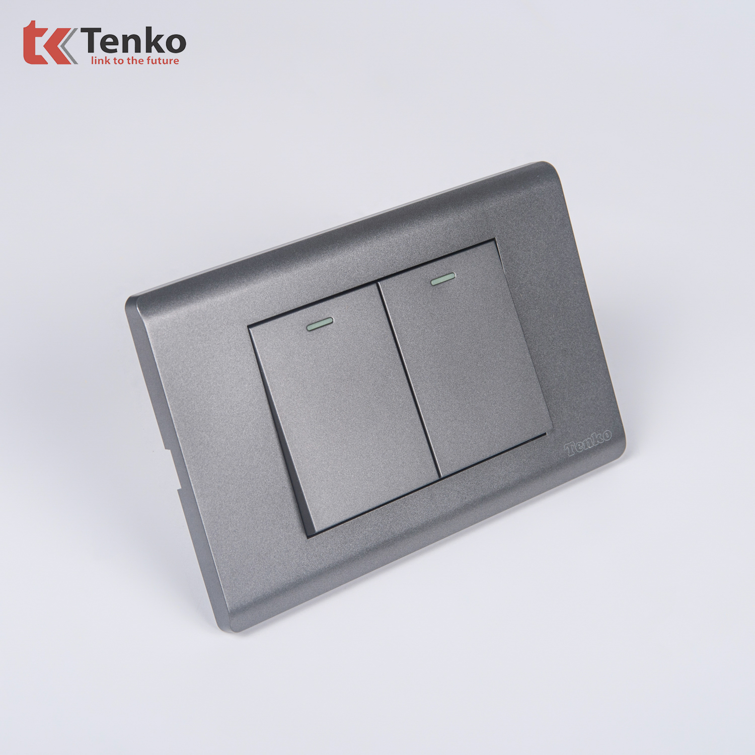 Công Tắc 2 Nút Chống Cháy Cao Cấp TENKO TK-C25-02 – Mặt Nhựa PC Xám