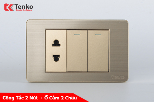 Thông Số Công Tắc 2 Nút Và Ổ Điện Đôi Âm Tường TENKO TK-C7G-027 Vàng
