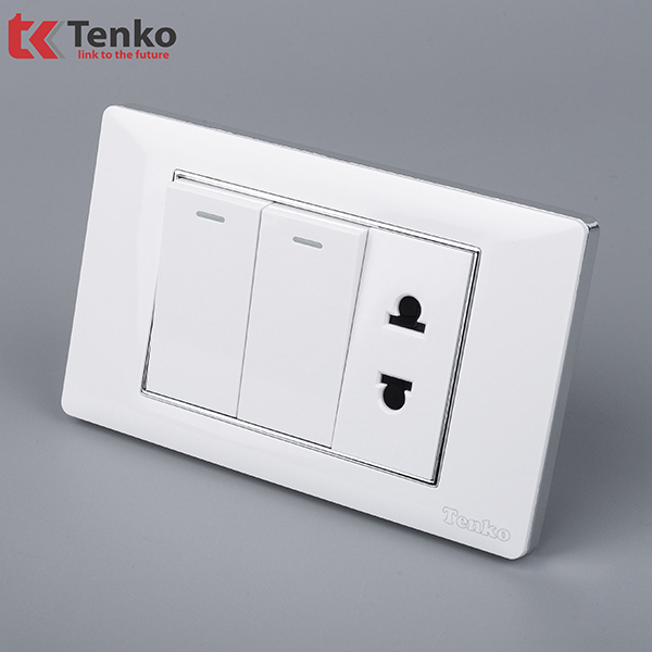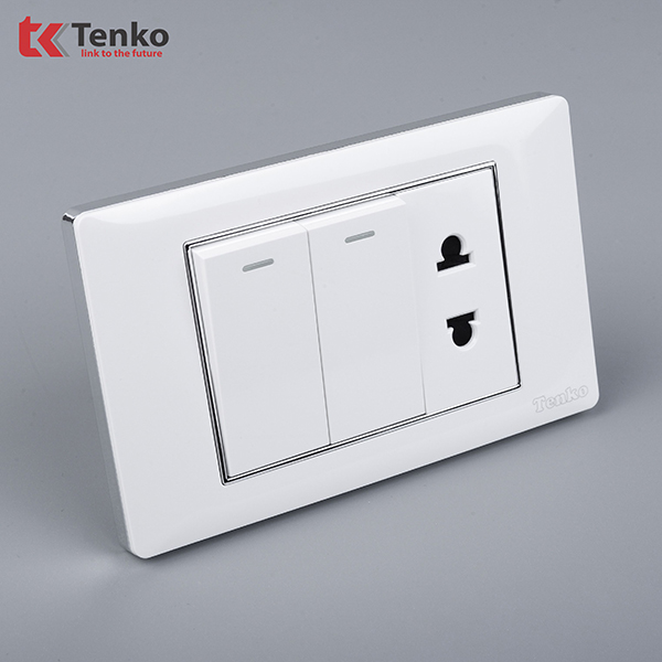 Công Tắc Và Ổ Cắm Đôi Âm Tường Mặt Nhựa Trắng Viền Bạc TENKO TK-C27-027 với thiết kế đa dạng với khả năng tùy biến cao, mang lại sự hài hòa và sang trọng cho mọi không gian.