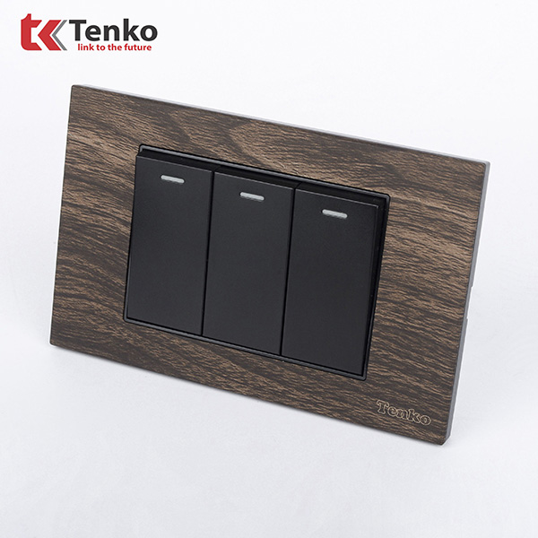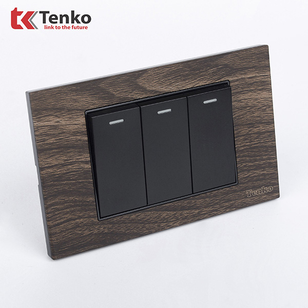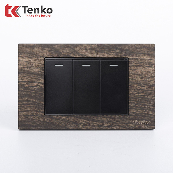 Công Tắc 3 nút Chống Giật 1 Chiều 2 Chiều vân Gỗ Cao Cấp Thương Hiệu Nhật Tenko TK-C6A-03