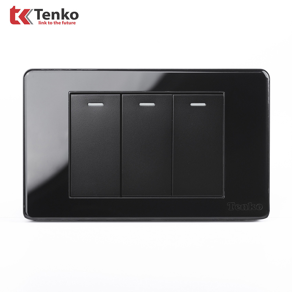 Công tắc âm tường mặt nhựa đen Tenko TK-C9-03 là dòng sản phẩm cao cấp nhất của Tenko. Sản phẩm được thiết kế rất tinh tế, sang trọng, hiện đại đạt tiêu chuẩn chất lượng quốc tế. Đây là dòng sản phẩm bán rất chạy trên thị trường. Phù hợp lắp đặt tại các công trình lớn và dân dụng.