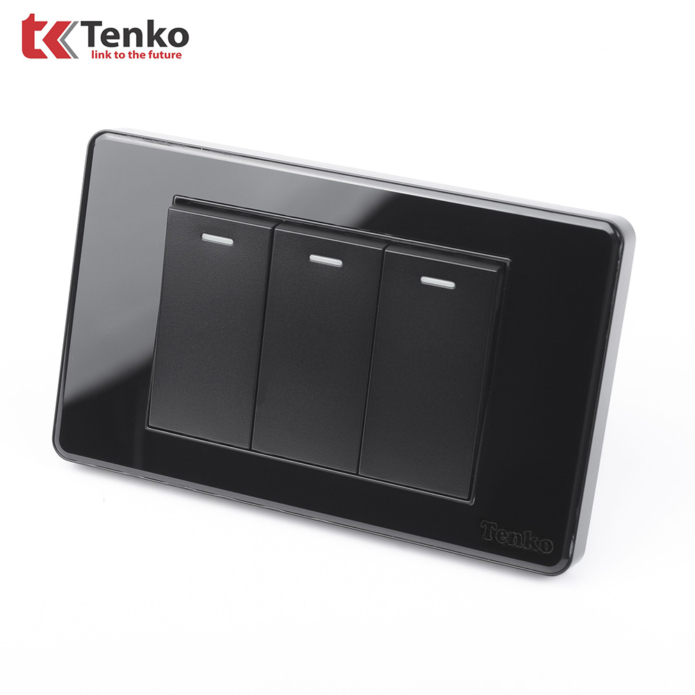 Công Tắc 3 Nút Âm Tường Cao Cấp 1 Chiều và 2 Chiều TENKO TK-C9-03 ĐEN