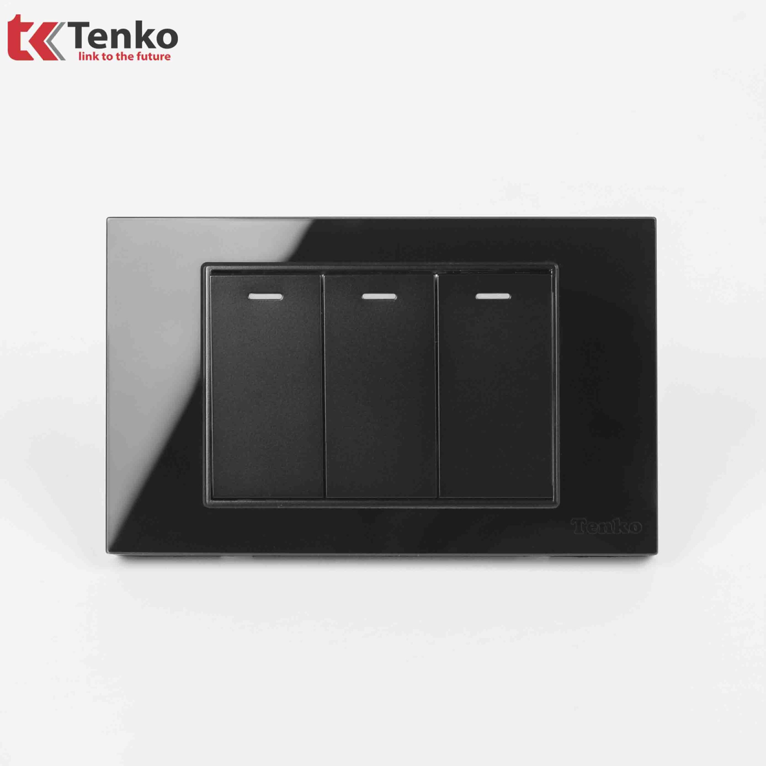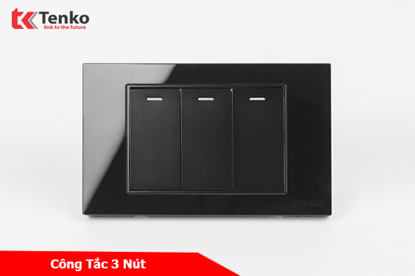Công Tắc 3 Nút Âm Tường Mặt Kính Cường Lực Cao Cấp TENKO TK-C18-03 ĐEN