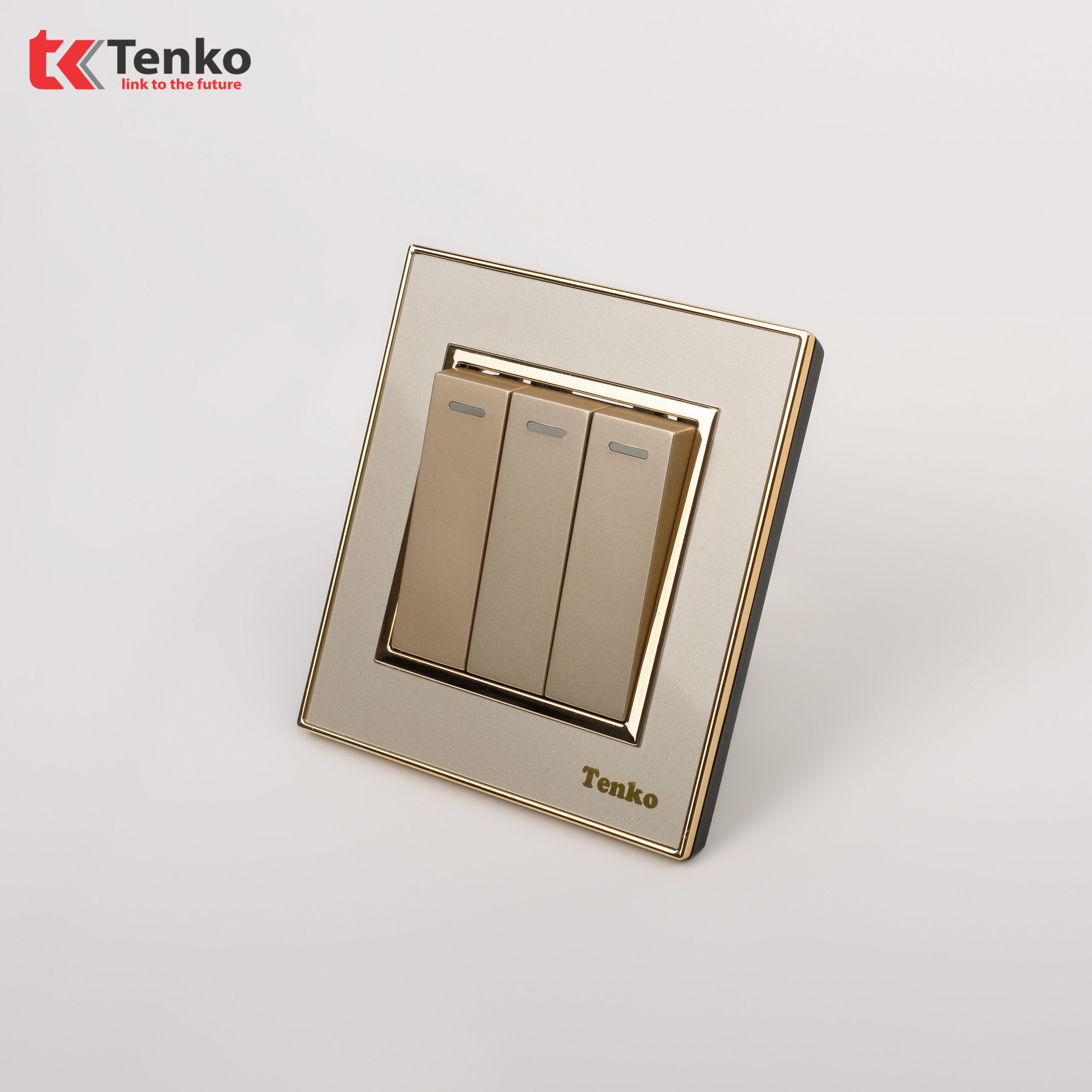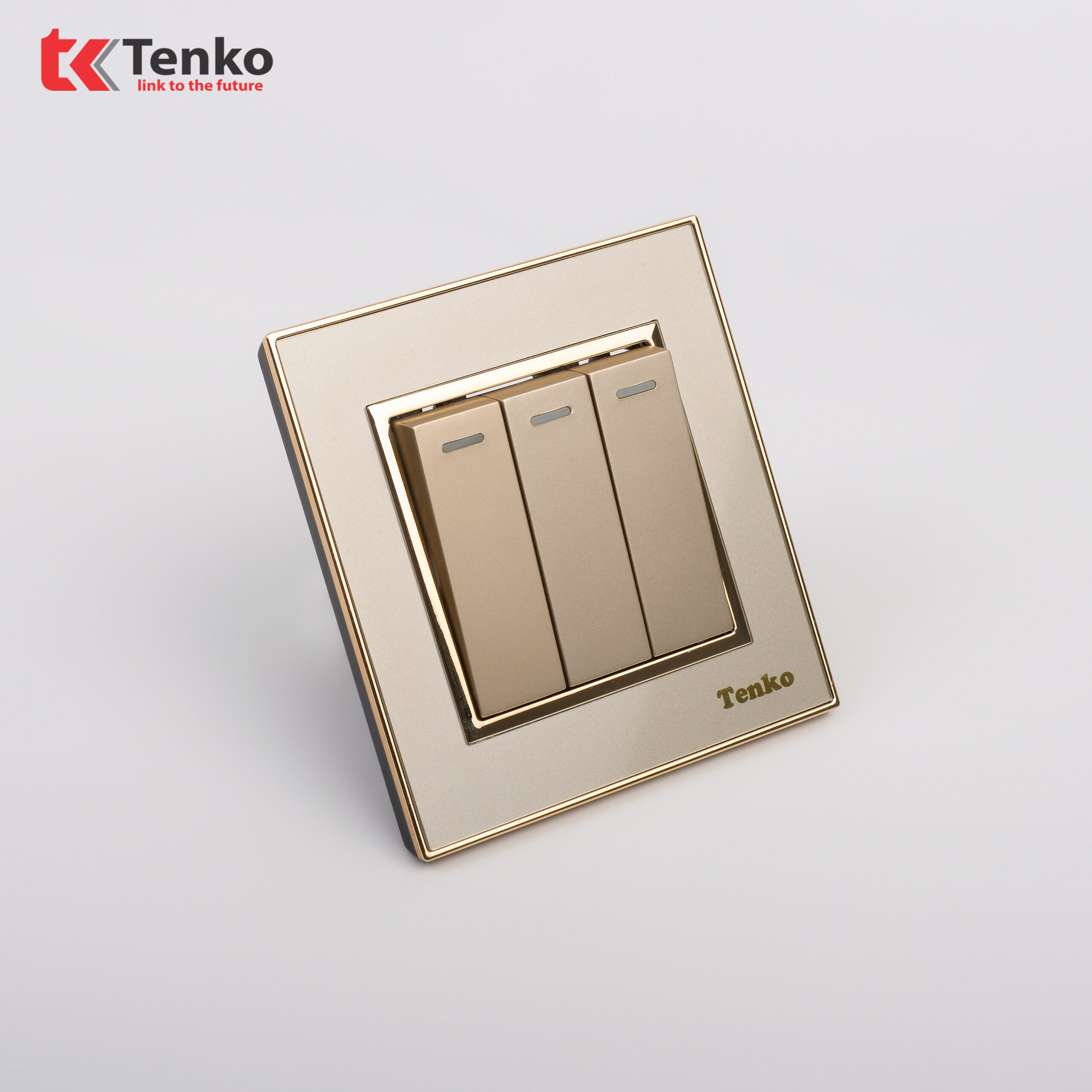 Công Tắc 3 Nút Âm Tường Mặt Nhựa Vàng Viền Vàng Tenko TK-F66-03