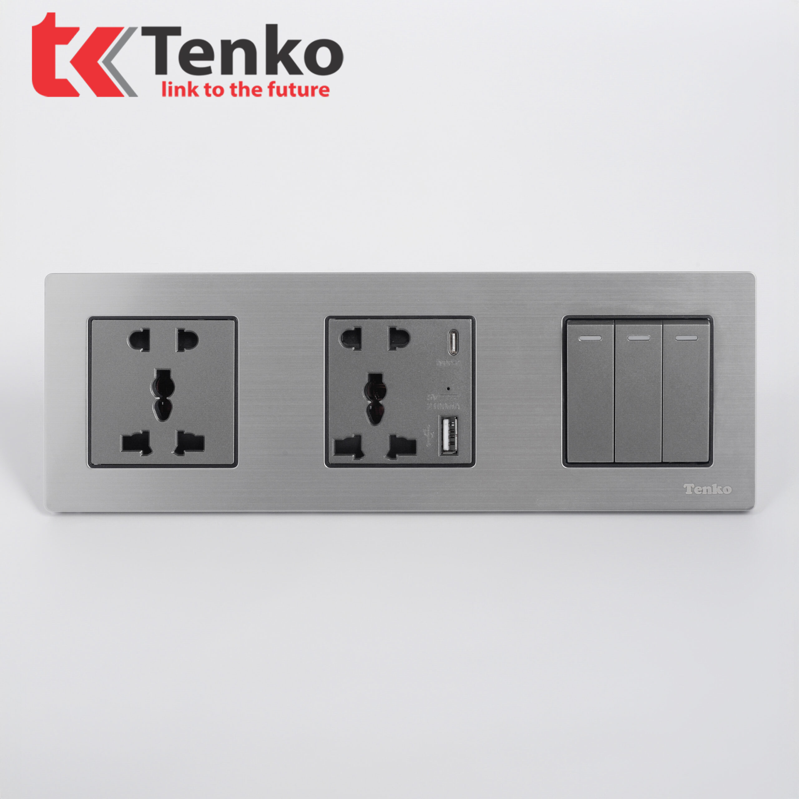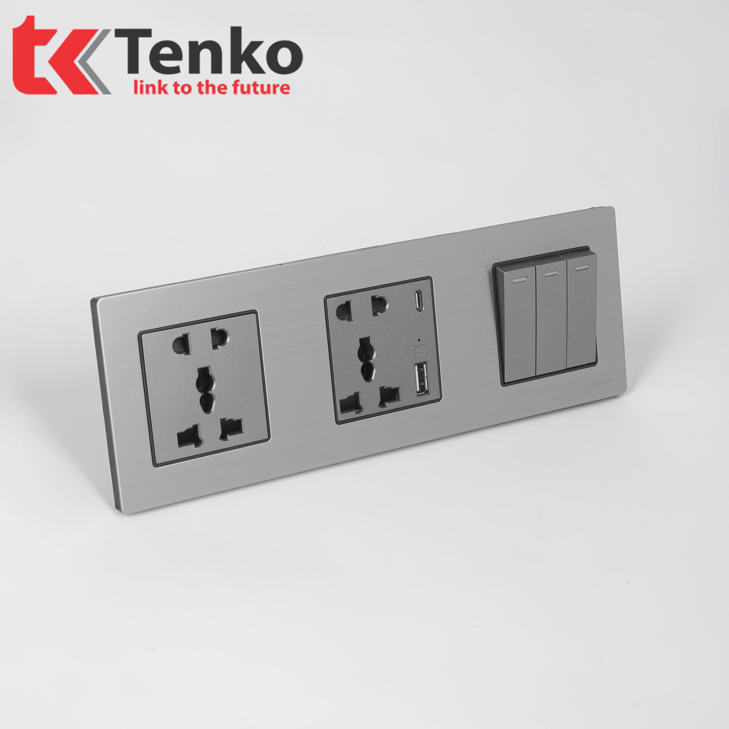 Công Tắc 3 Nút + Ổ Cắm USB Và Type C Mặt Hợp KimTK-KL3-02