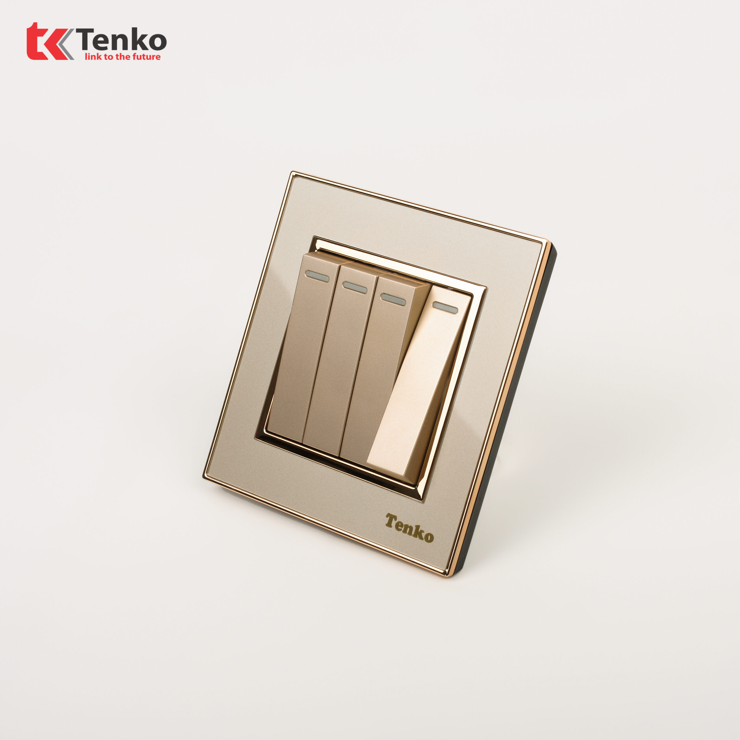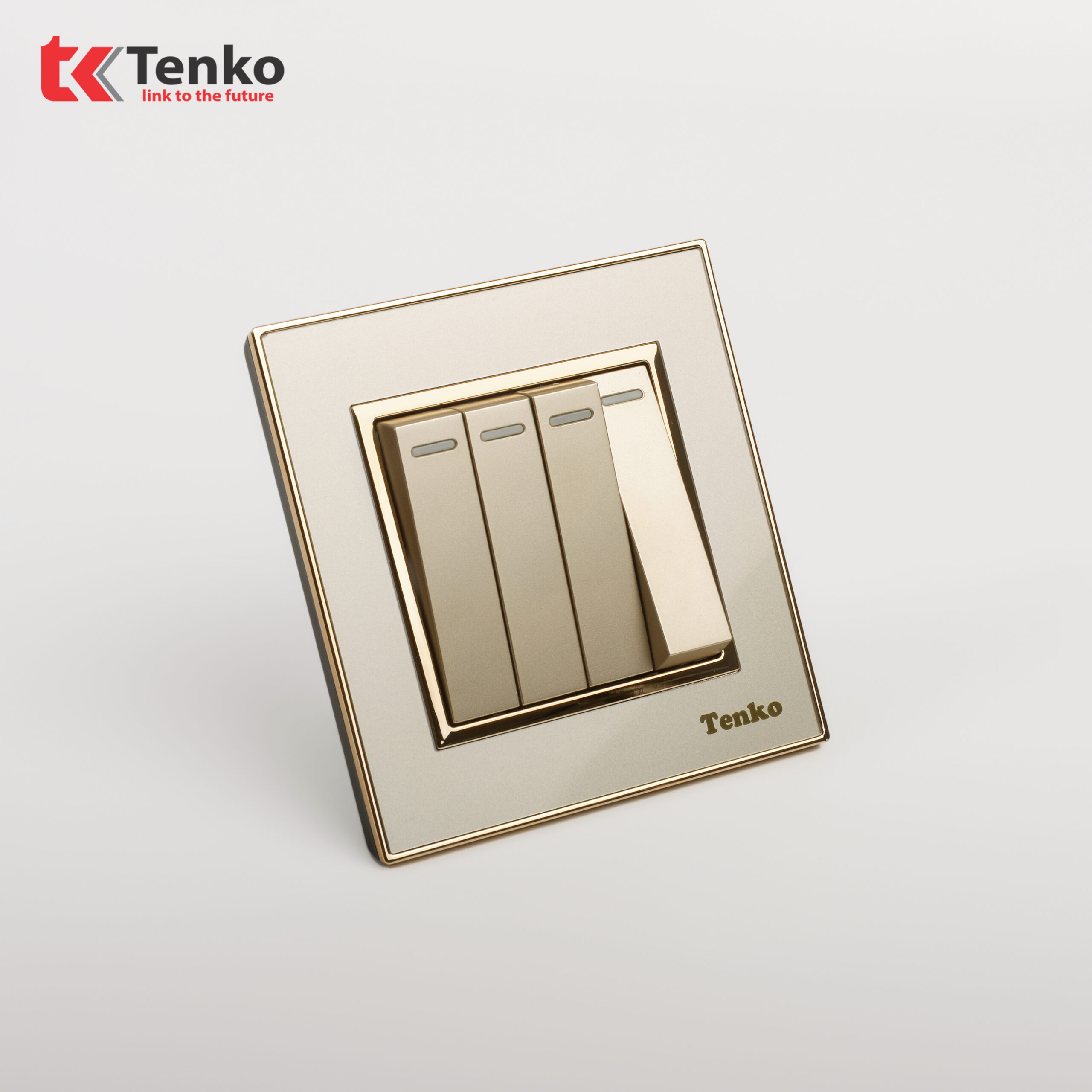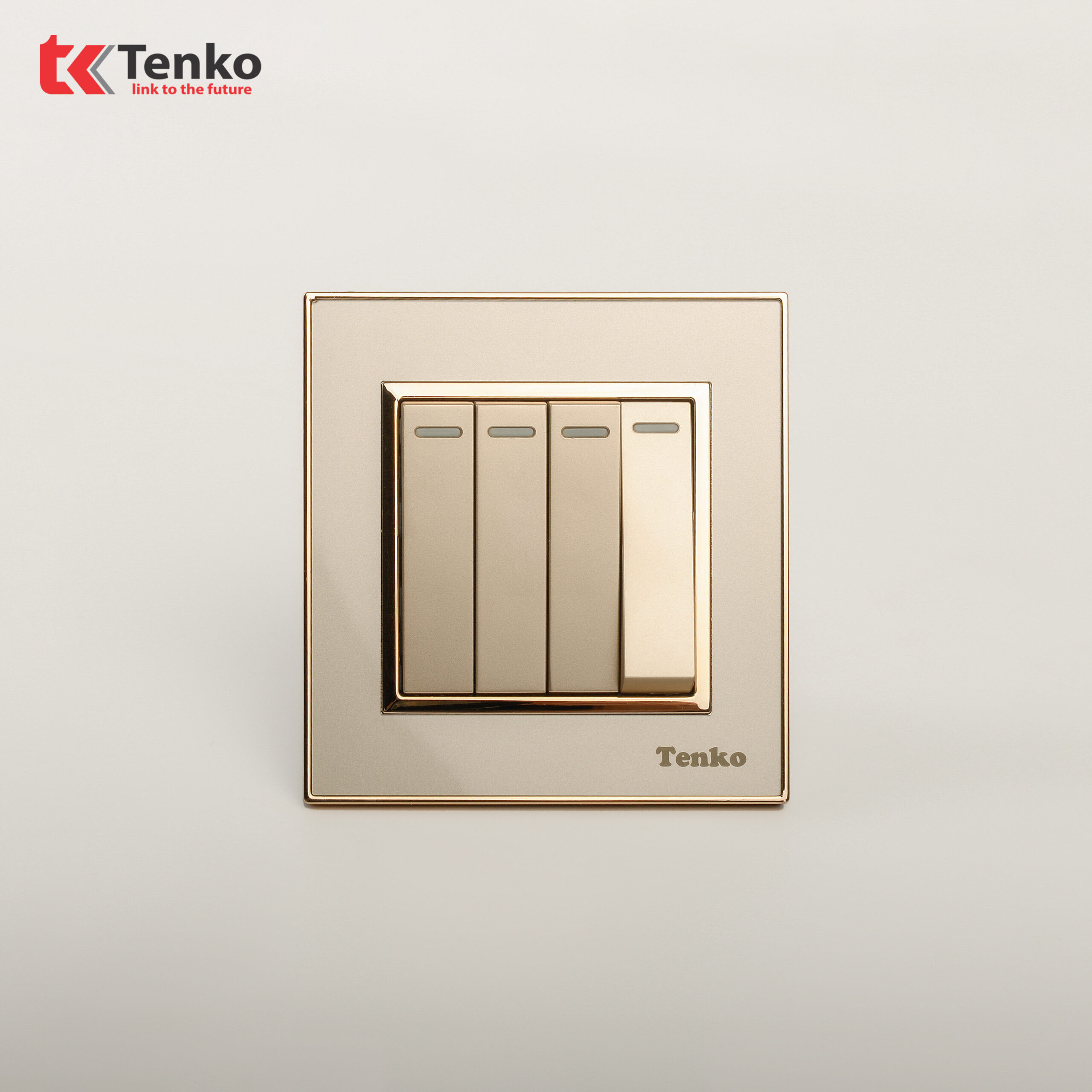 Công Tắc 4 Nút Âm Tường Mặt Nhựa Vàng Viền Vàng Tenko TK-F66-04