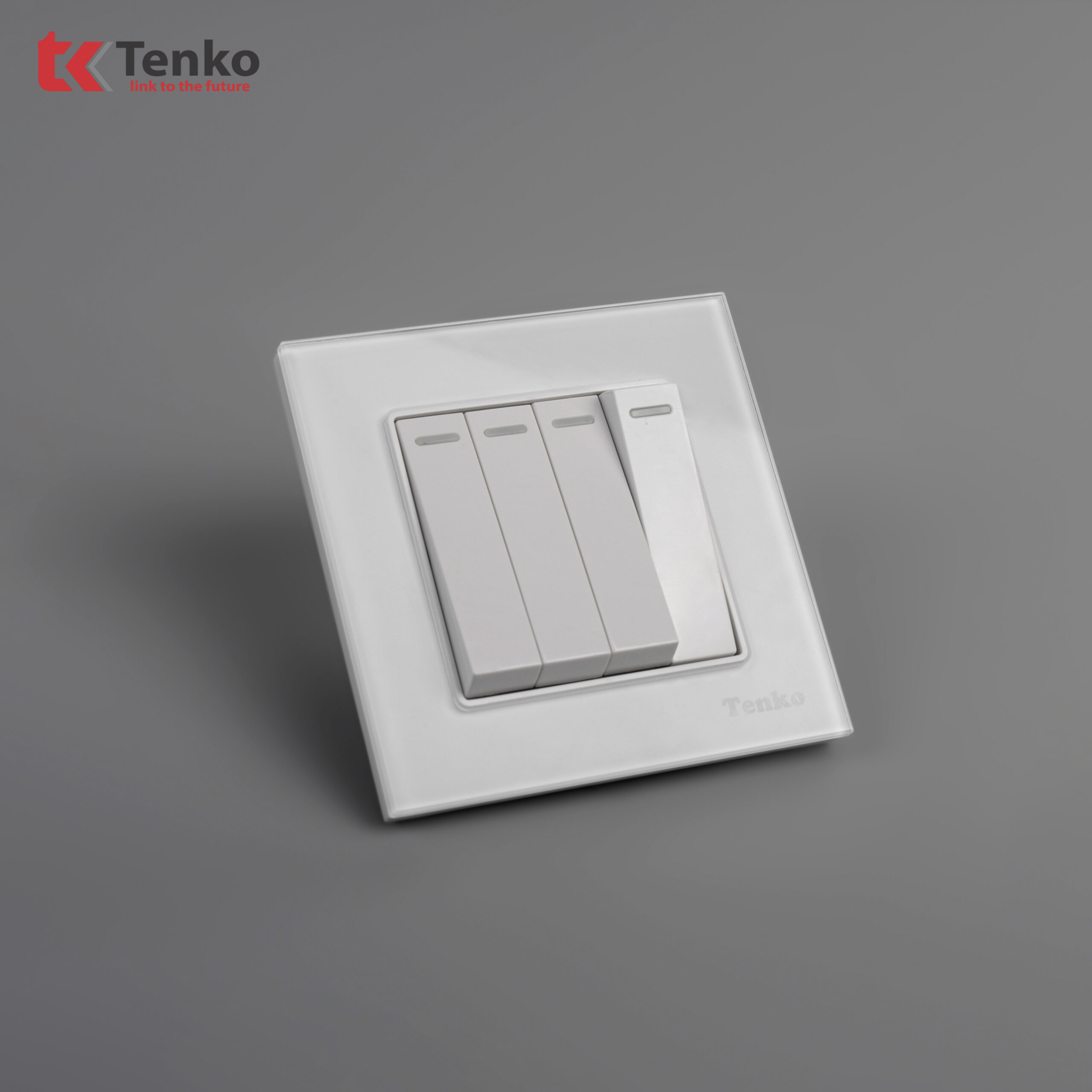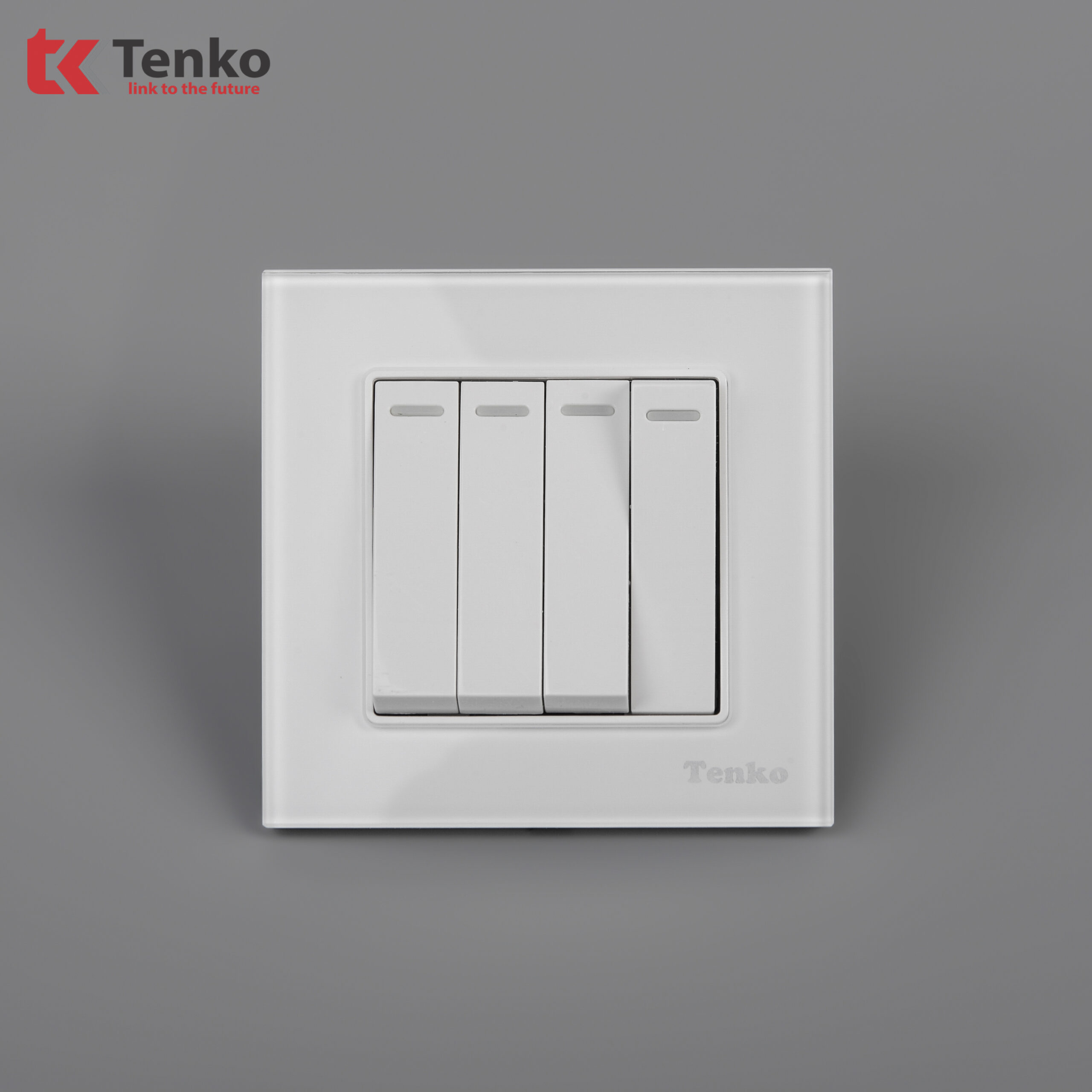 công tắc âm tường 4 nút mặt kính cường lực cao cấp tenko tk-f71-d-04 màu trắng
