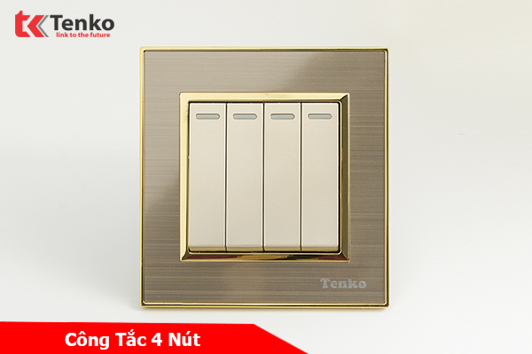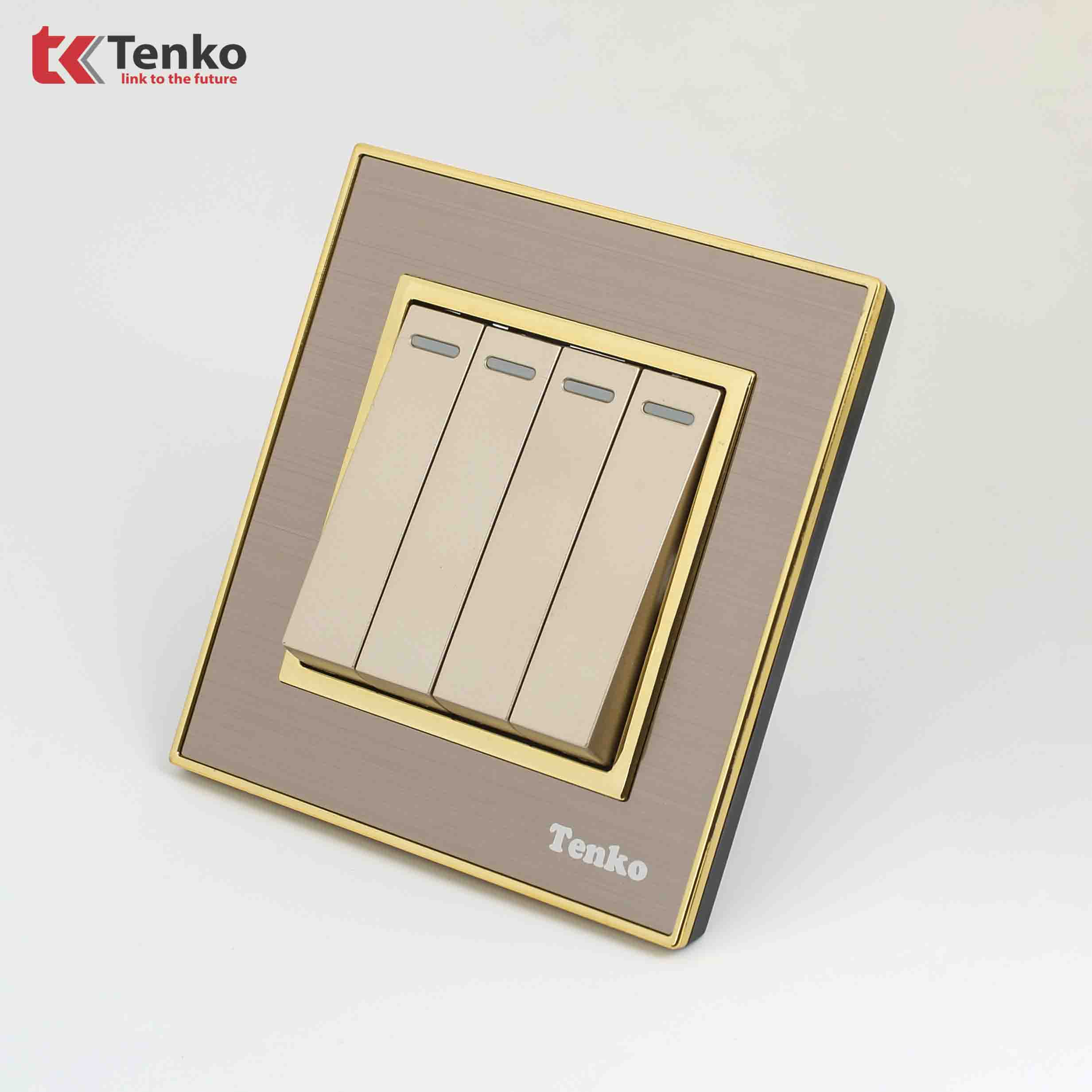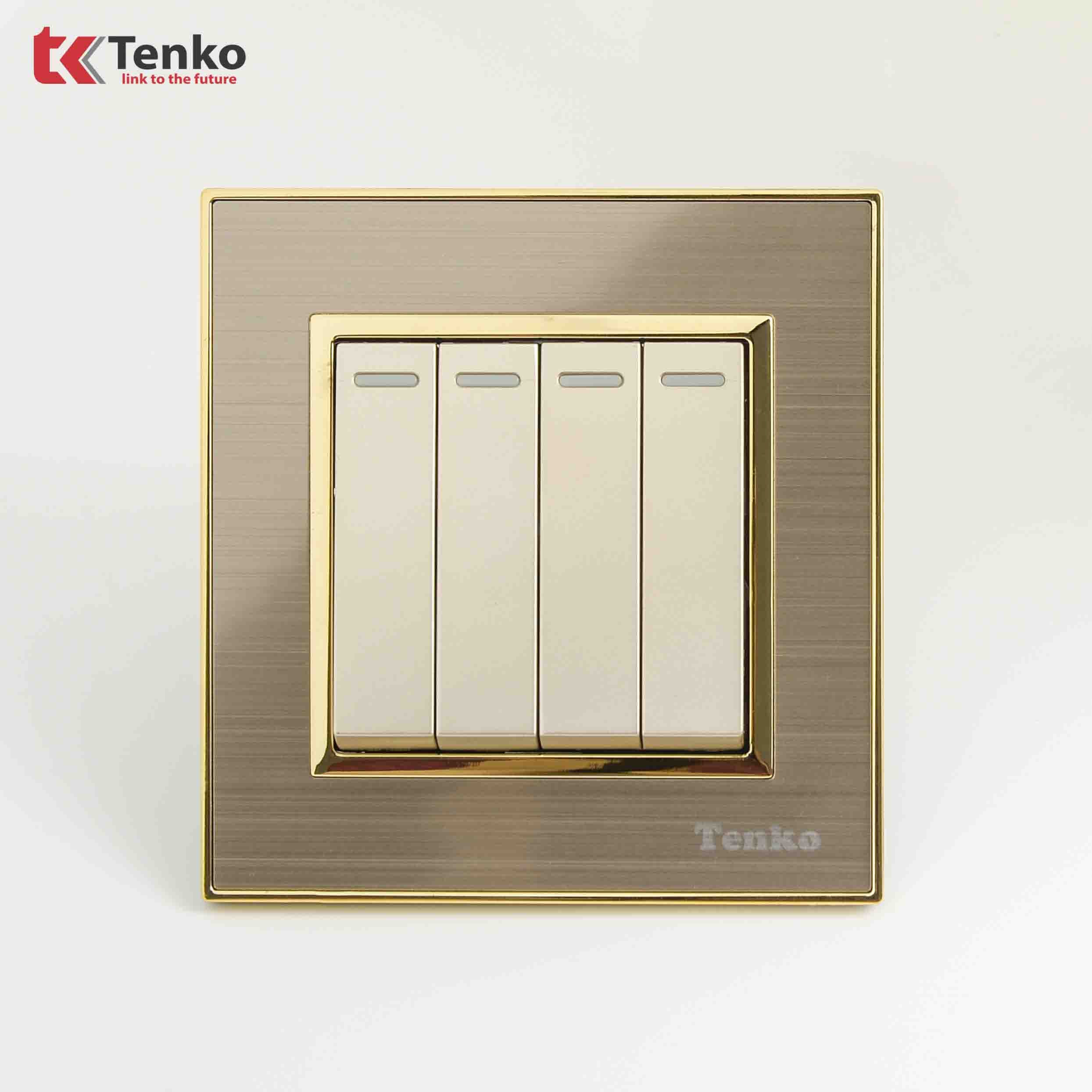 Công Tắc 4 Nút Mặt Thép Không Rỉ Vân Xước Tenko TK-F66-B9-04 Vàng
