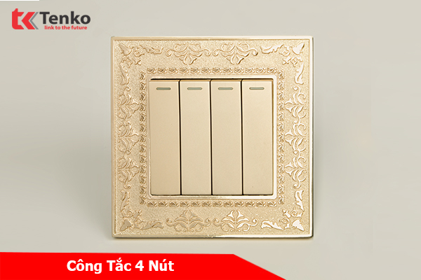 Công tắc 4 nút Mặt Vuông Tân Cổ Điển Tenko TK-F88-04