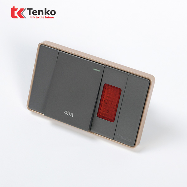 Thông số kỹ thuật Công tắc 45A Tràn Viền Âm Tường Tenko TK-C1-033 Xám Viền Vàng