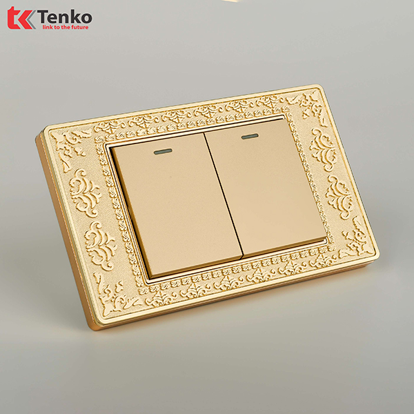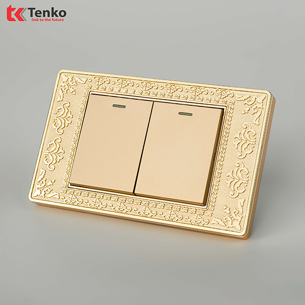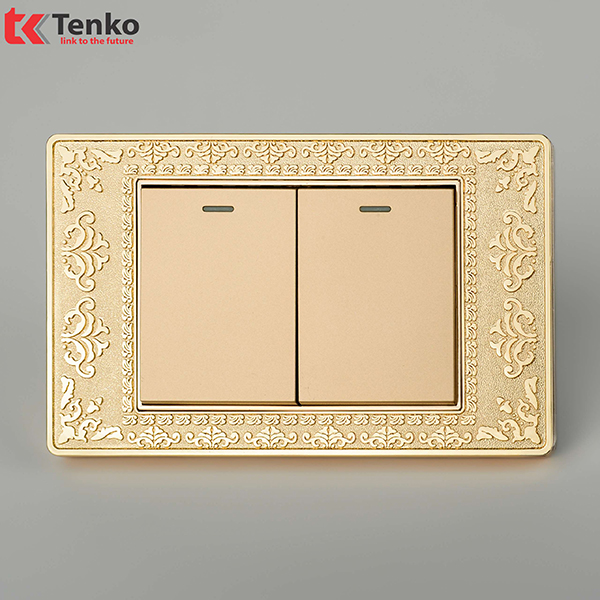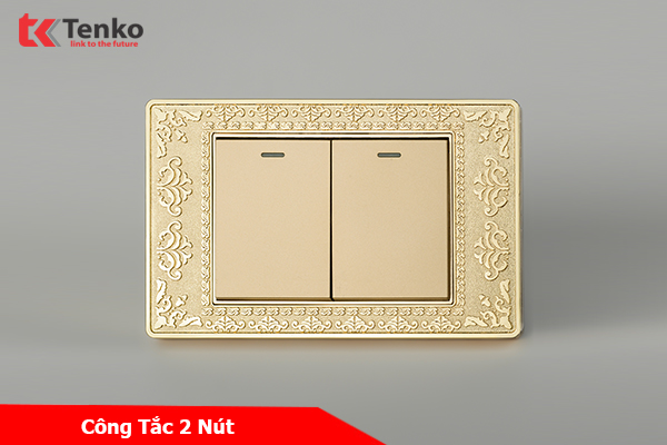 Công Tắc Điện 2 Nút Mặt Hoa Văn Đồng Nguyên Khối Chính Hãng Tenko TK-C8-02