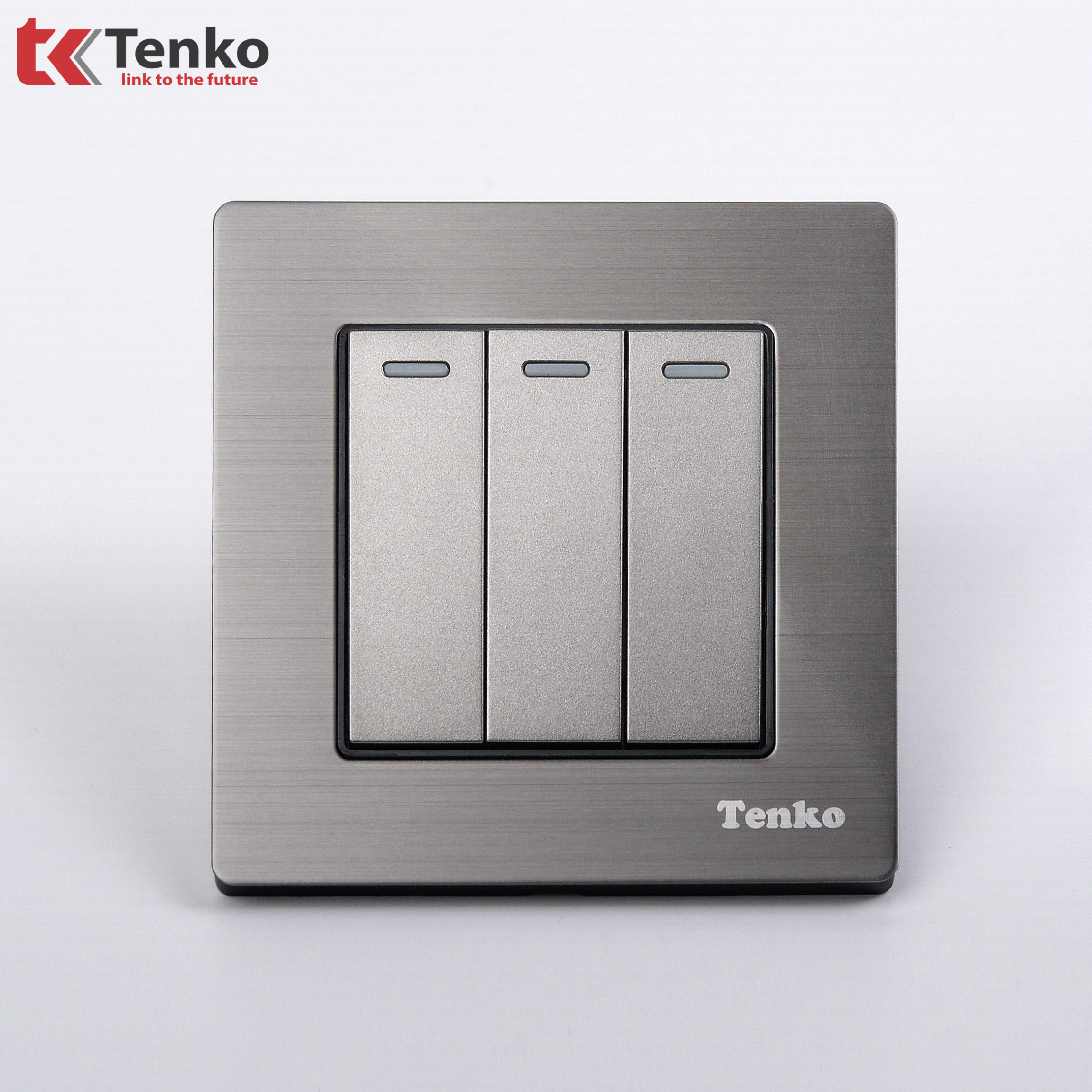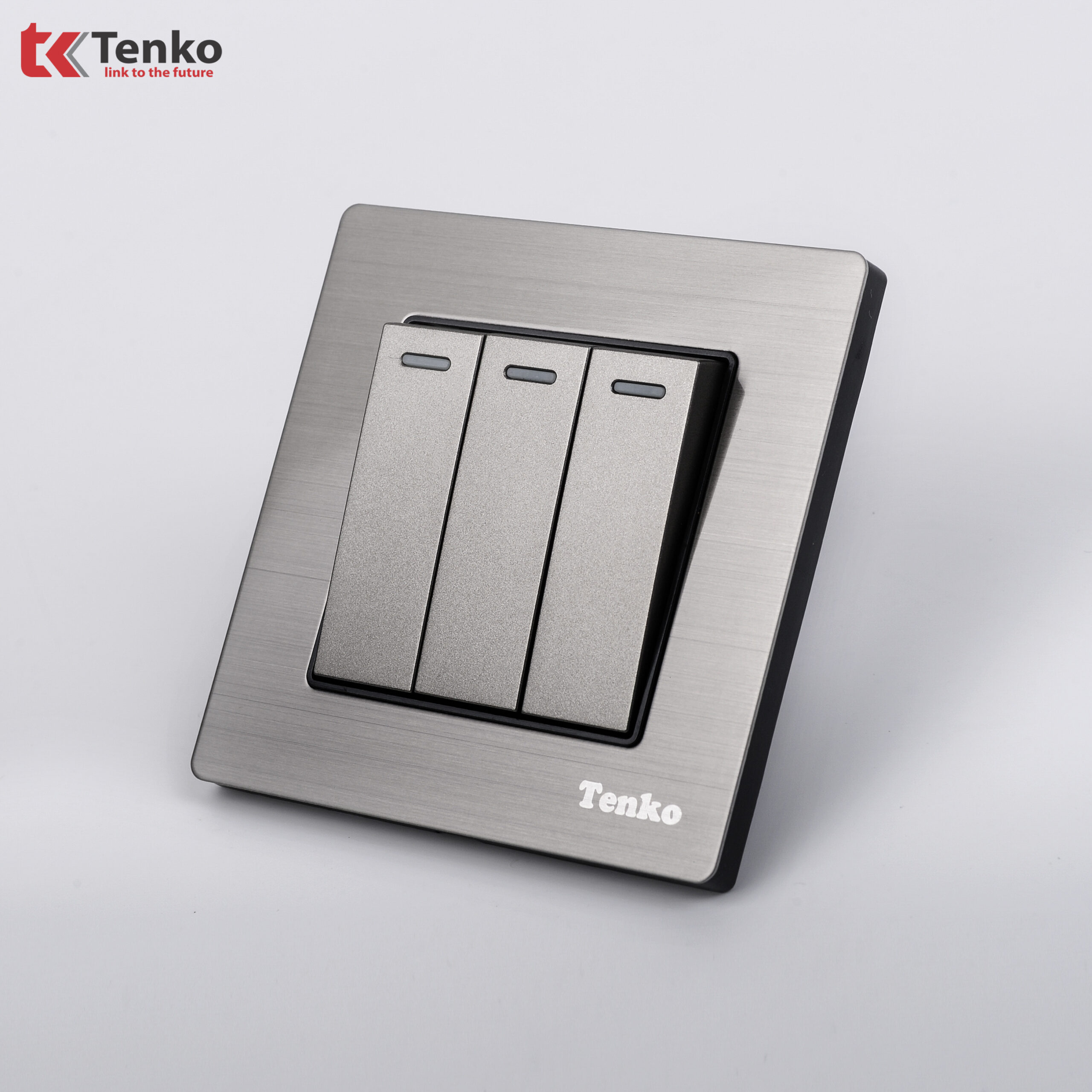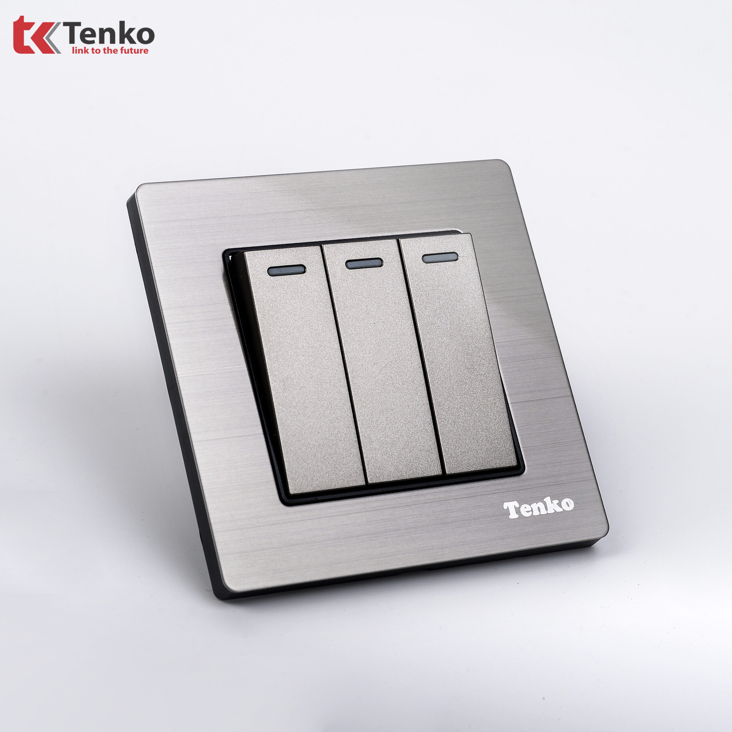 Sản phẩm thuộc dòng cao cấp của TENKO với chất liệu nhựa chống cháy, mặt Kim Loại đem lại vẻ đẹp sang trọng. Mặt công tắc điện nổi hoặc chìm tuỳ theo nhu cầu của khách hàng.