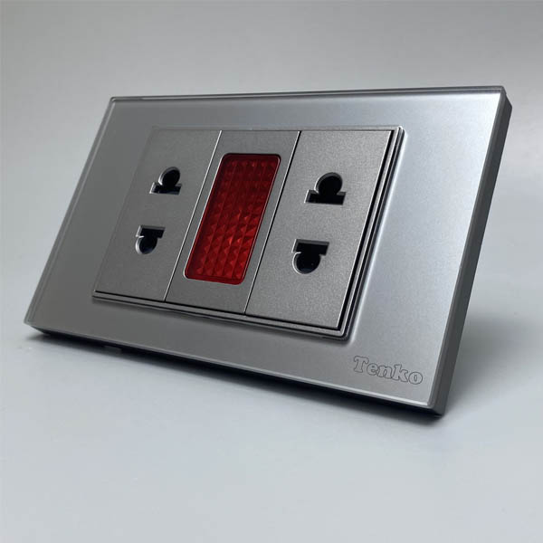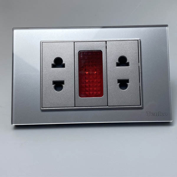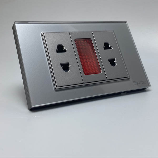 Ổ Cắm Đèn Báo Điện Âm tường Mặt Kính Cường Lực TENKO TK-C18-080 Xám