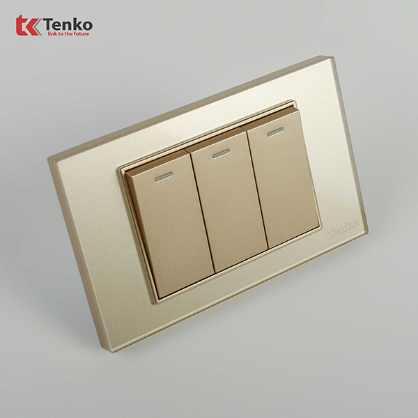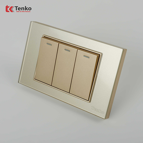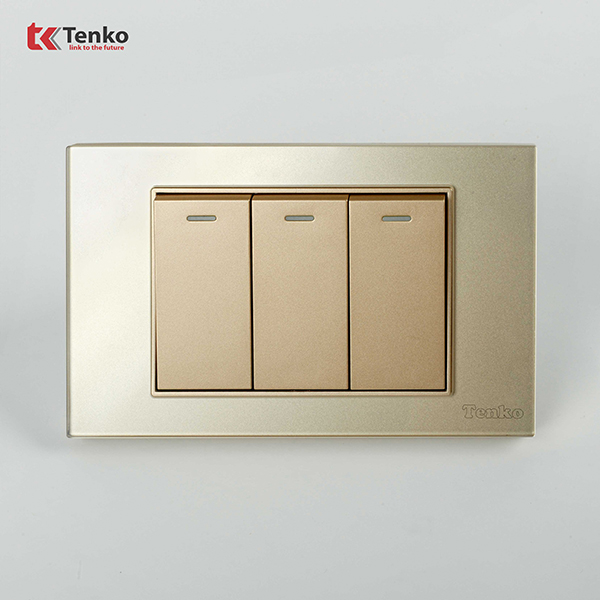 Công Tắc 3 Nút Mặt Kính Cường Lực Vàng TENKO TK-C18-03