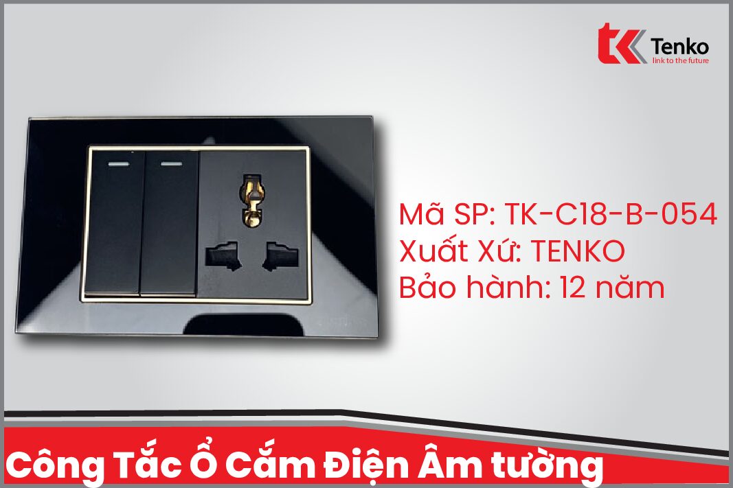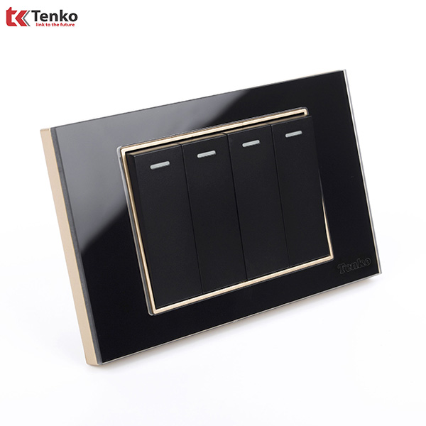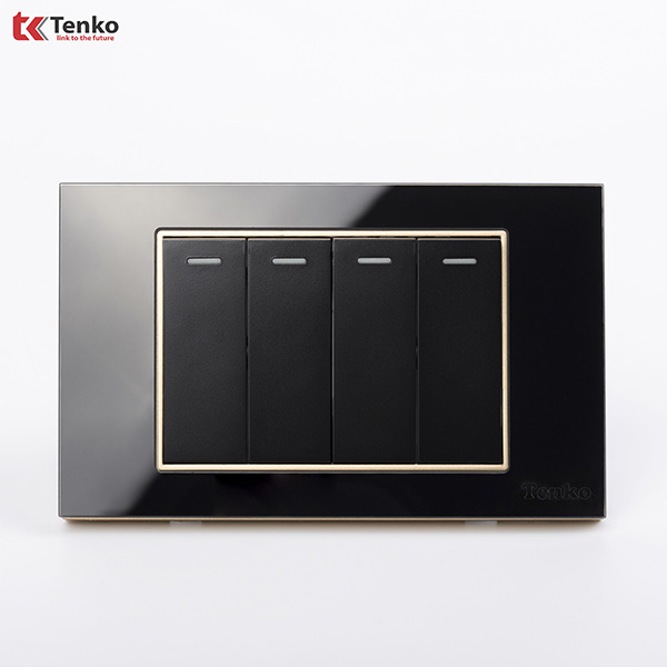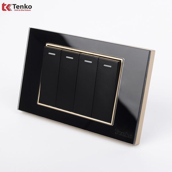 Công Tắc Điện Âm tường Mặt Kính Cường Lực Viền Vàng TENKO TK-C18B-04 ĐEN