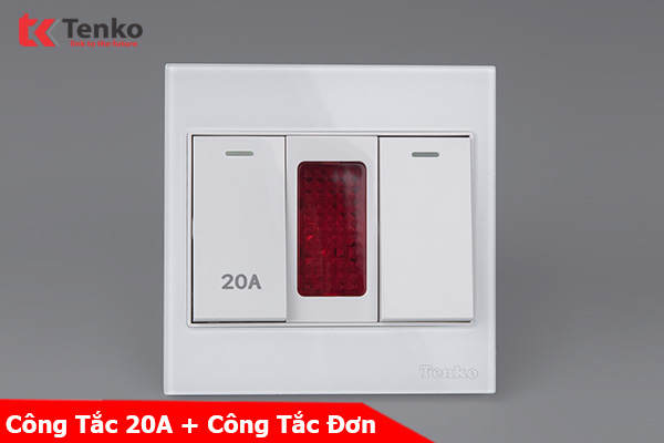 Công tắc 20A mạnh mẽ: Với dòng định mức lên đến 20A, đây là lựa chọn chuyên dụng để đóng ngắt an toàn cho bình nóng lạnh, máy điều hòa hoặc máy bơm nước mà không lo quá tải.