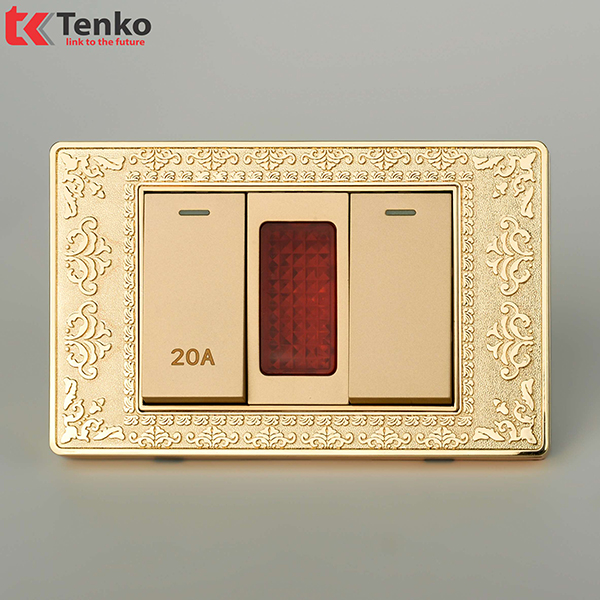 Công Tắc Công Suất Cao 20A + Đèn Báo + Công Tắc Mặt Hoa Văn Tân Cổ Điển TK-C8-081