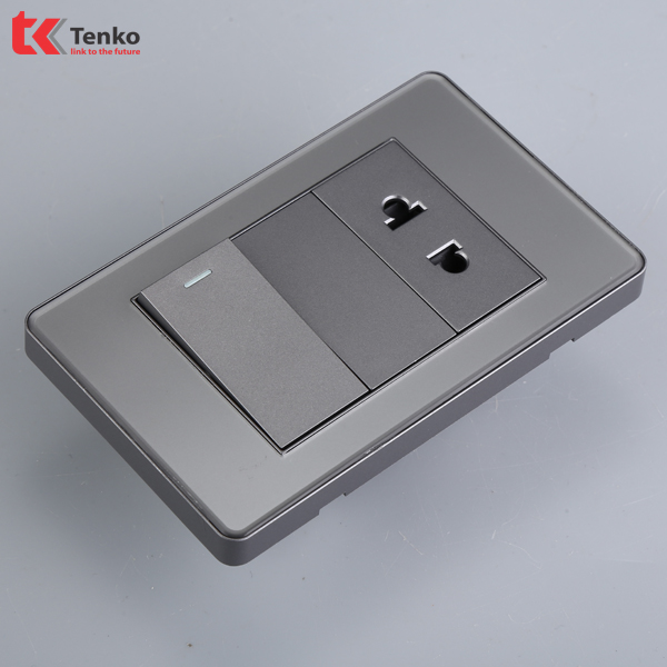 Ổ Cắm Và Công Tắc Điện Màu Xám Âm Tường Mặt Hợp Kim Tenko TK-C7-023