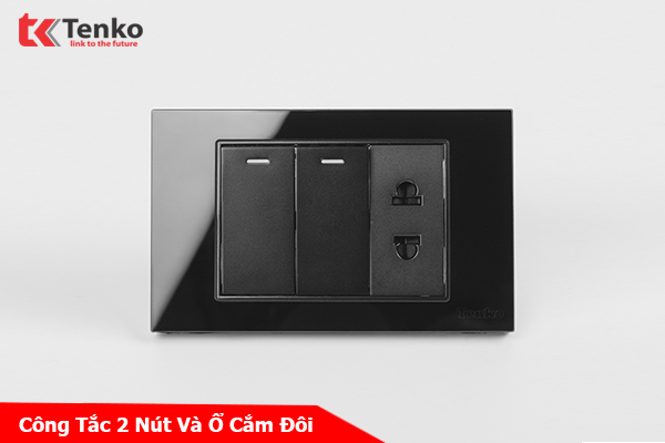 Công Tắc 2 Nút Và Ổ Cắm Đôi Âm Tường Mặt Kính Cường Lực Màu Đen TENKO TK-C18-027