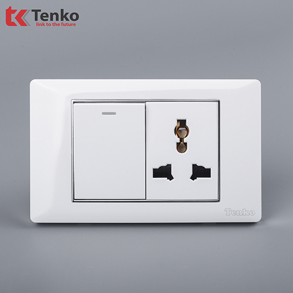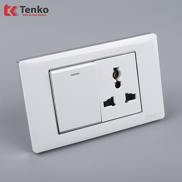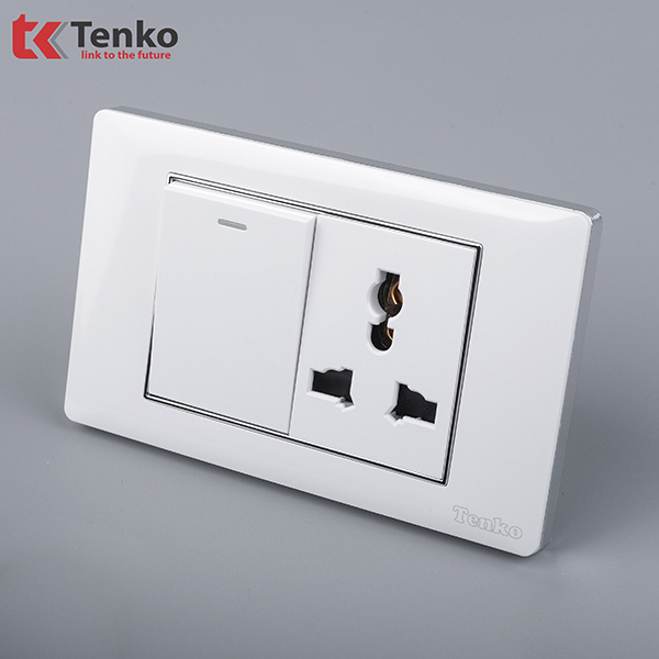 Công Tắc Ổ Cắm Điện Âm tường Mặt Nhựa Trắng Viền Bạc TENKO TK-C27-039