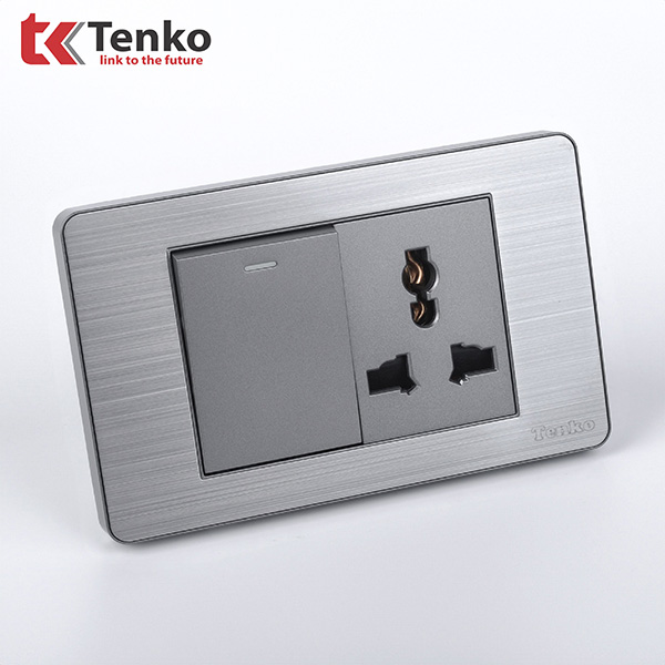 Công Tắc Ổ Cắm Điện Mặt Hợp Kim Xám TENKO TK-C7-041
