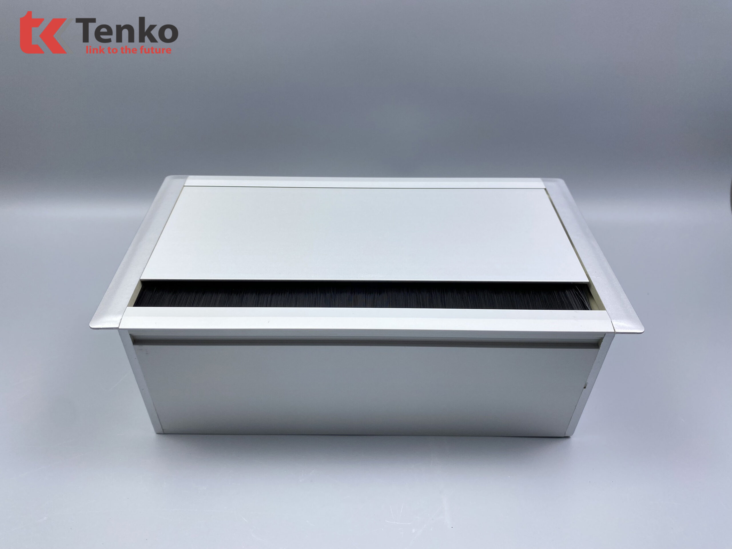 - Sản phẩm Hộp ổ cắm âm bàn nhôm được làm từ hợp kim nhôm cao cấp có độ bền cao, phần trên nắp có thiết kế dạng bàn chải màu đen giúp cho việc giữ dây và luồn dây dễ dàng hơn sẽ không bị cấn dây khi đóng nắp hộp.