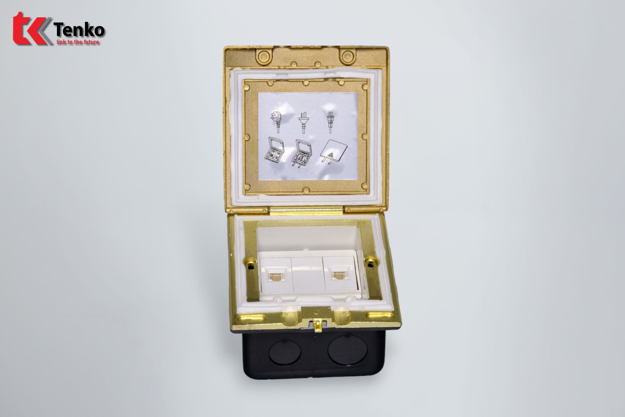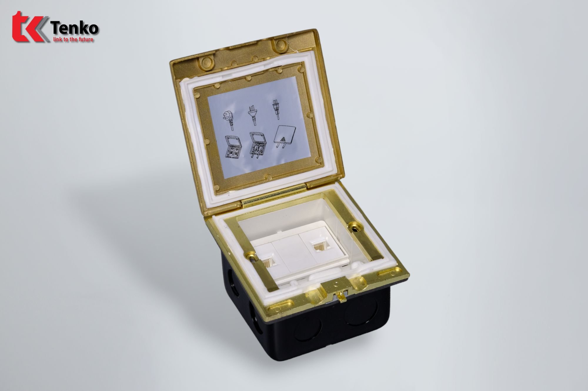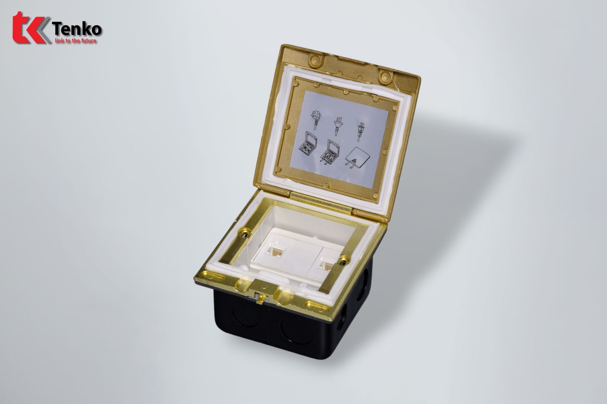 Hộp Điện Âm Sàn Chống Nước 2 Mạng LAN (RJ45) Tenko TK-J06-10 Vàng chất lượng cao được sản suất theo tiêu chuẩn Nhật Bản. Sản phẩm chuyên dùng lắp âm sàn bê tông, sàn nhà hoặc phòng bếp. Được làm bằng đồng, hoặc Inox, hoặc hợp kim nhôm với thiết kế tinh sảo, vô cùng sang trọng.