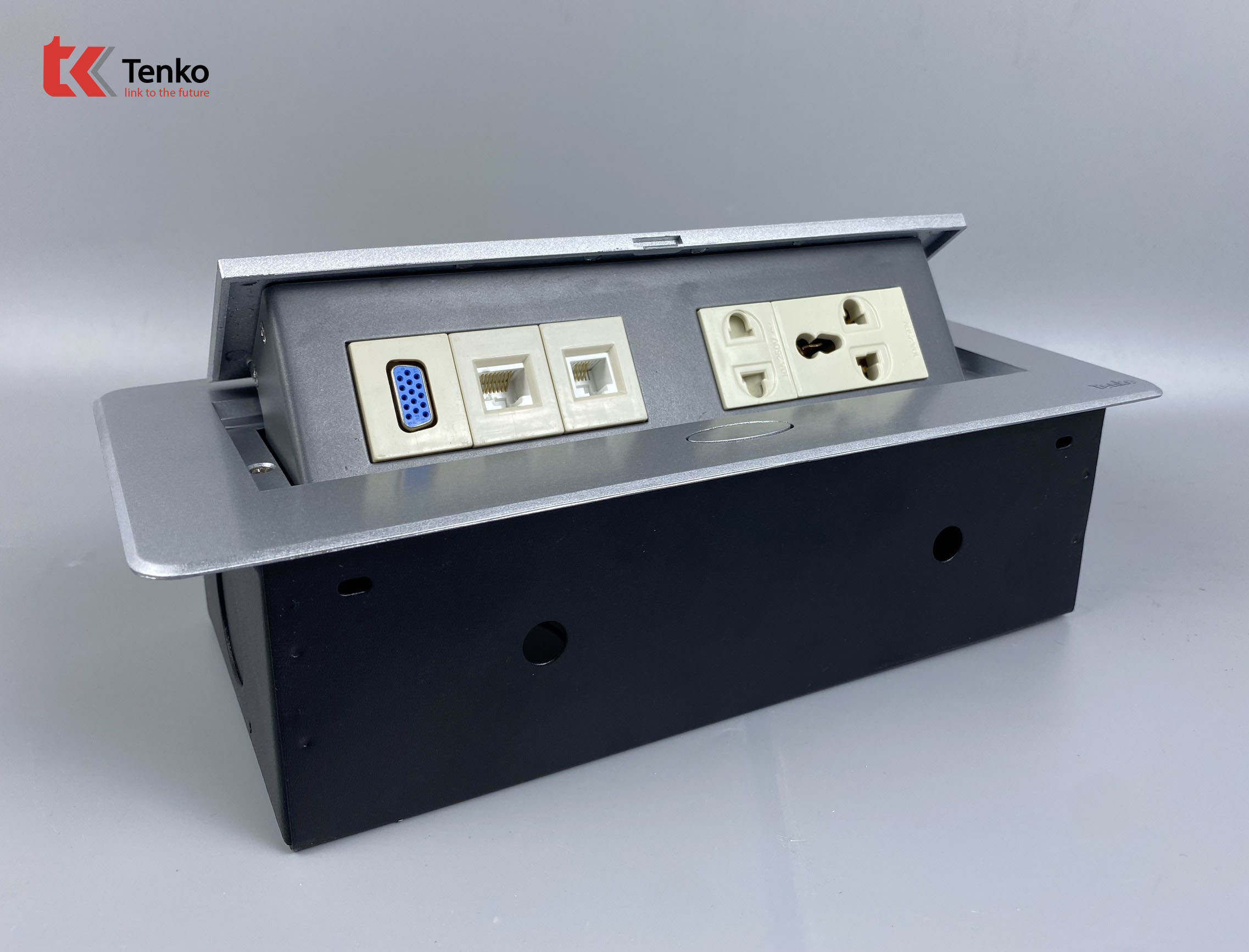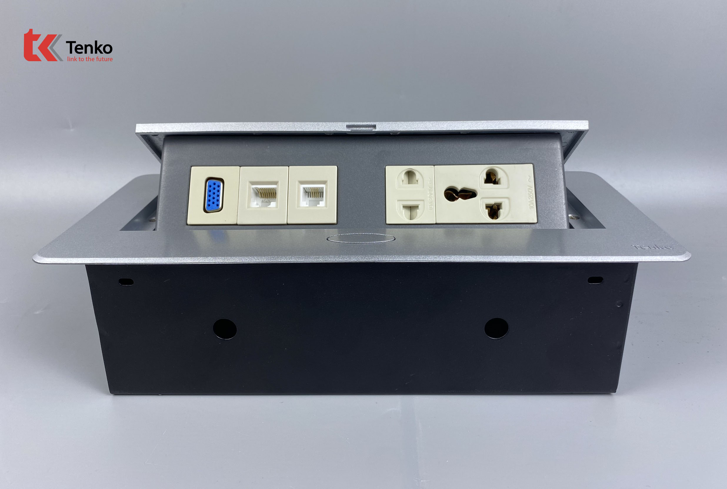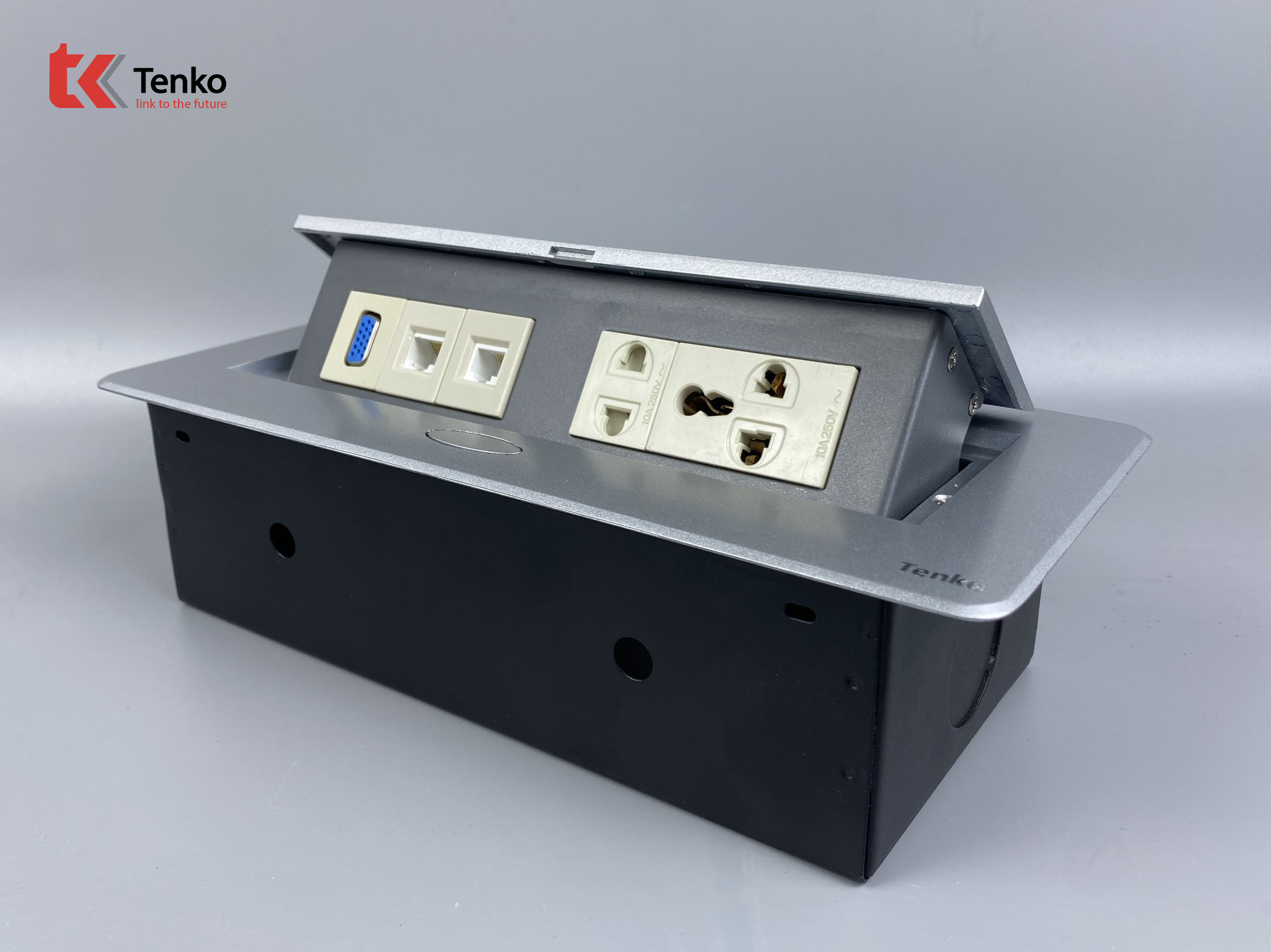 Hộp Ổ Cắm Điện Âm Bàn Họp Desktop Socket Chính hãng TENKO TK-AS05DN Màu Bạc