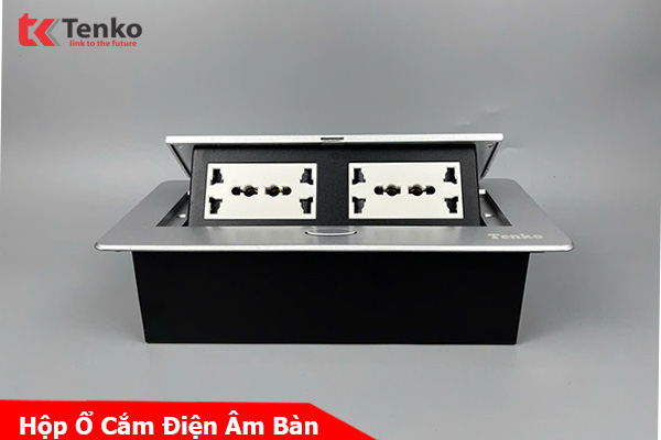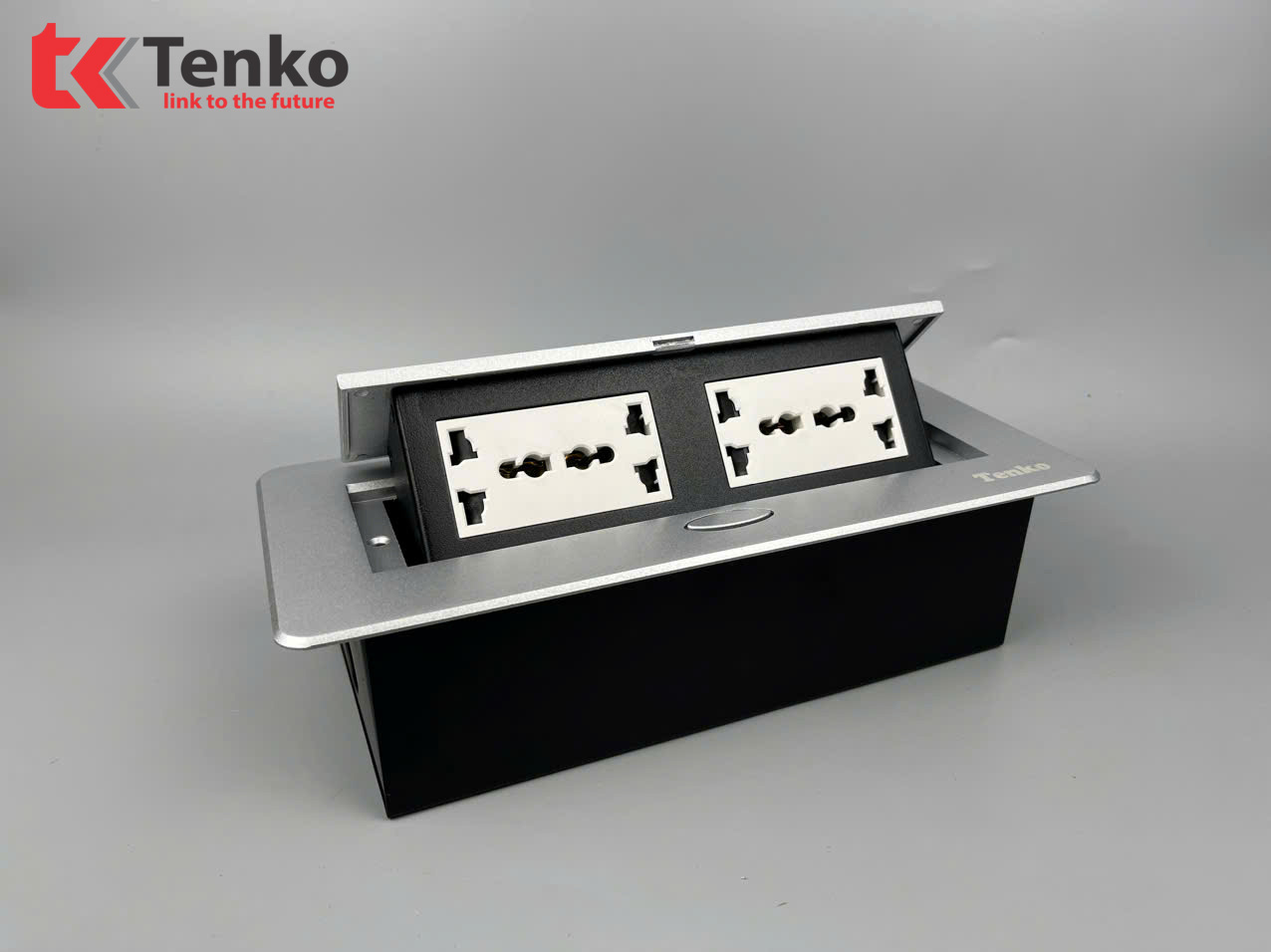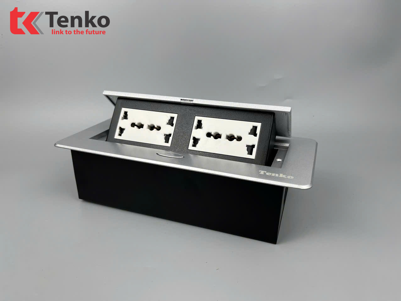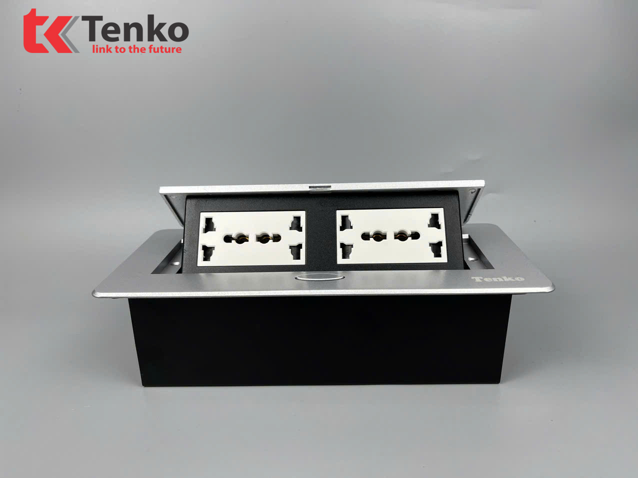Hộp Ổ Cắm Điện Âm Bàn Họp Desktop Socket Chính hãng TENKO TK-AS06DN-02 Màu Bạc