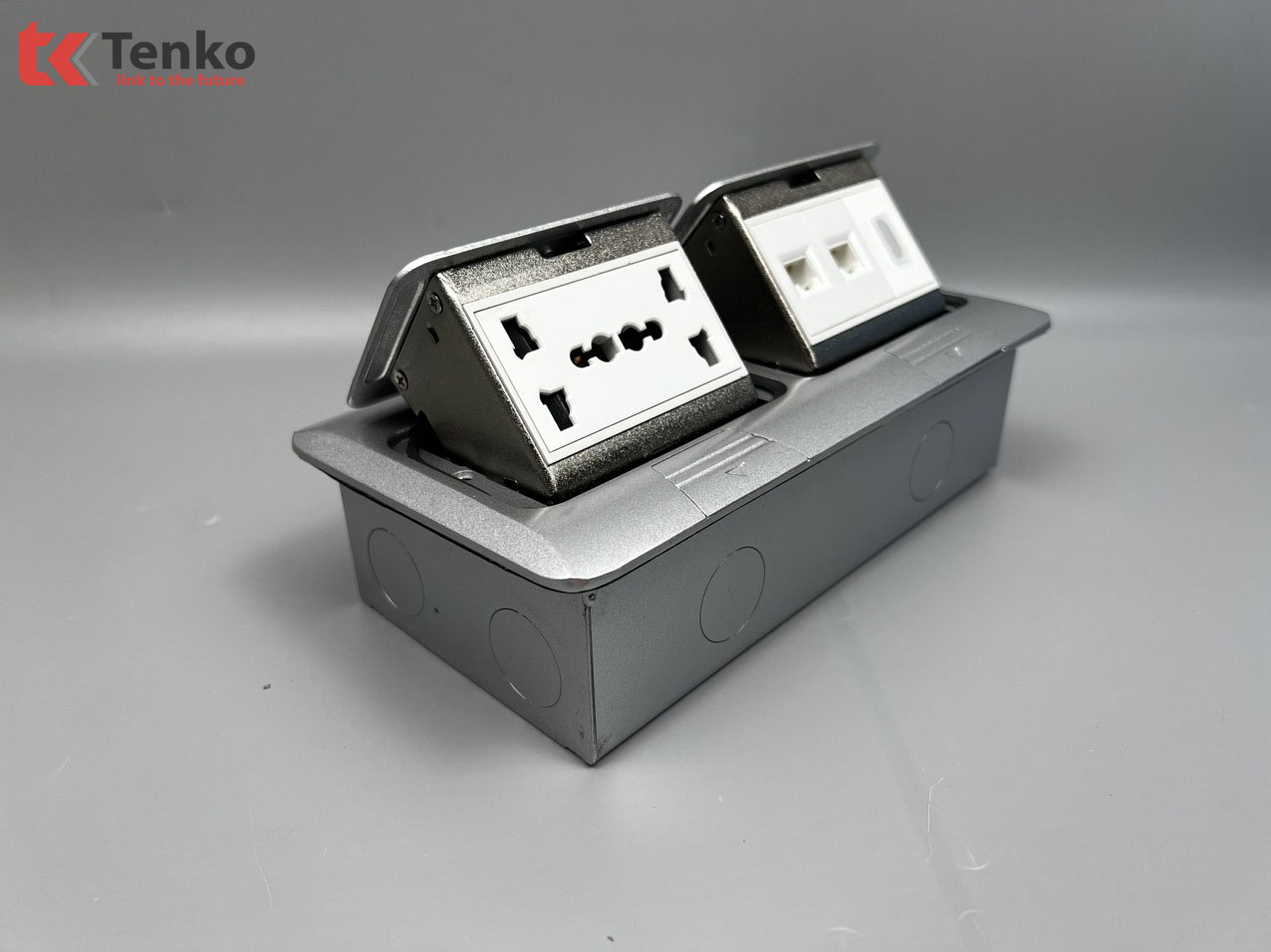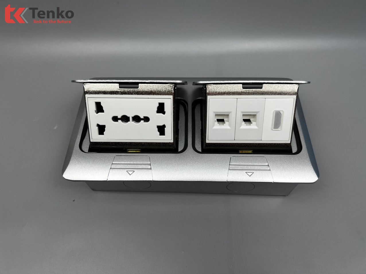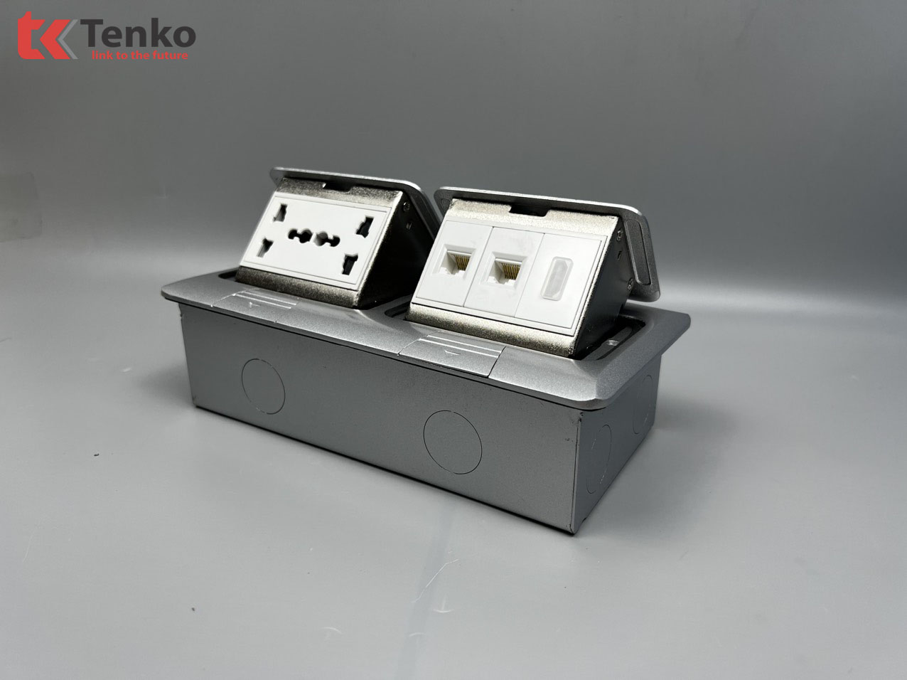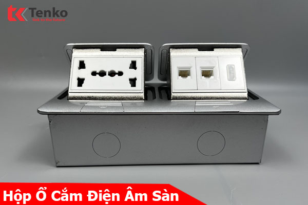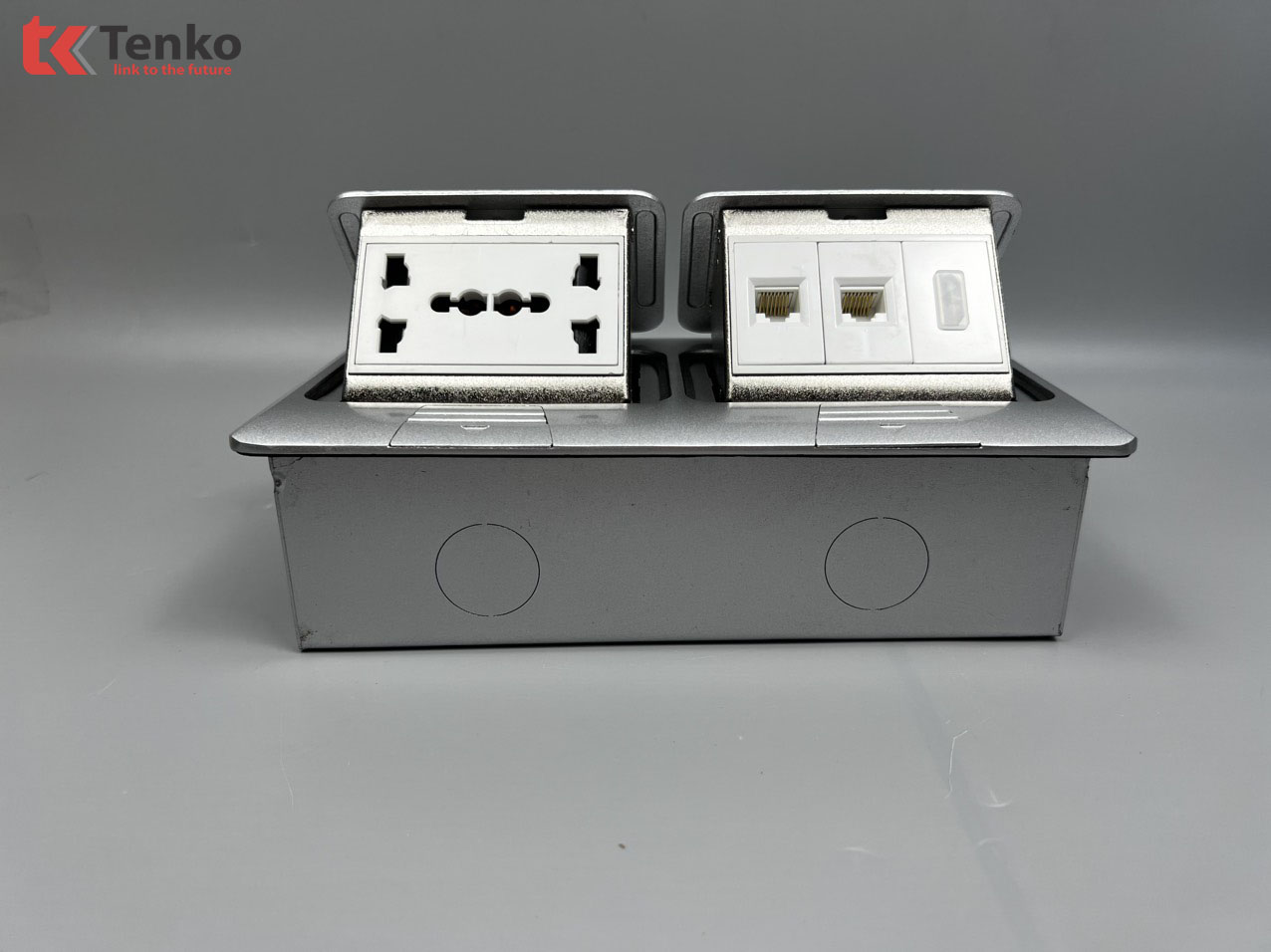 Ổ Cắm Điện Đôi 3 Chấu Âm Sàn Kèm 2 Ổ LAN (RJ45) Và 1 HDMI Chính Hãng Tenko TK-J04-04