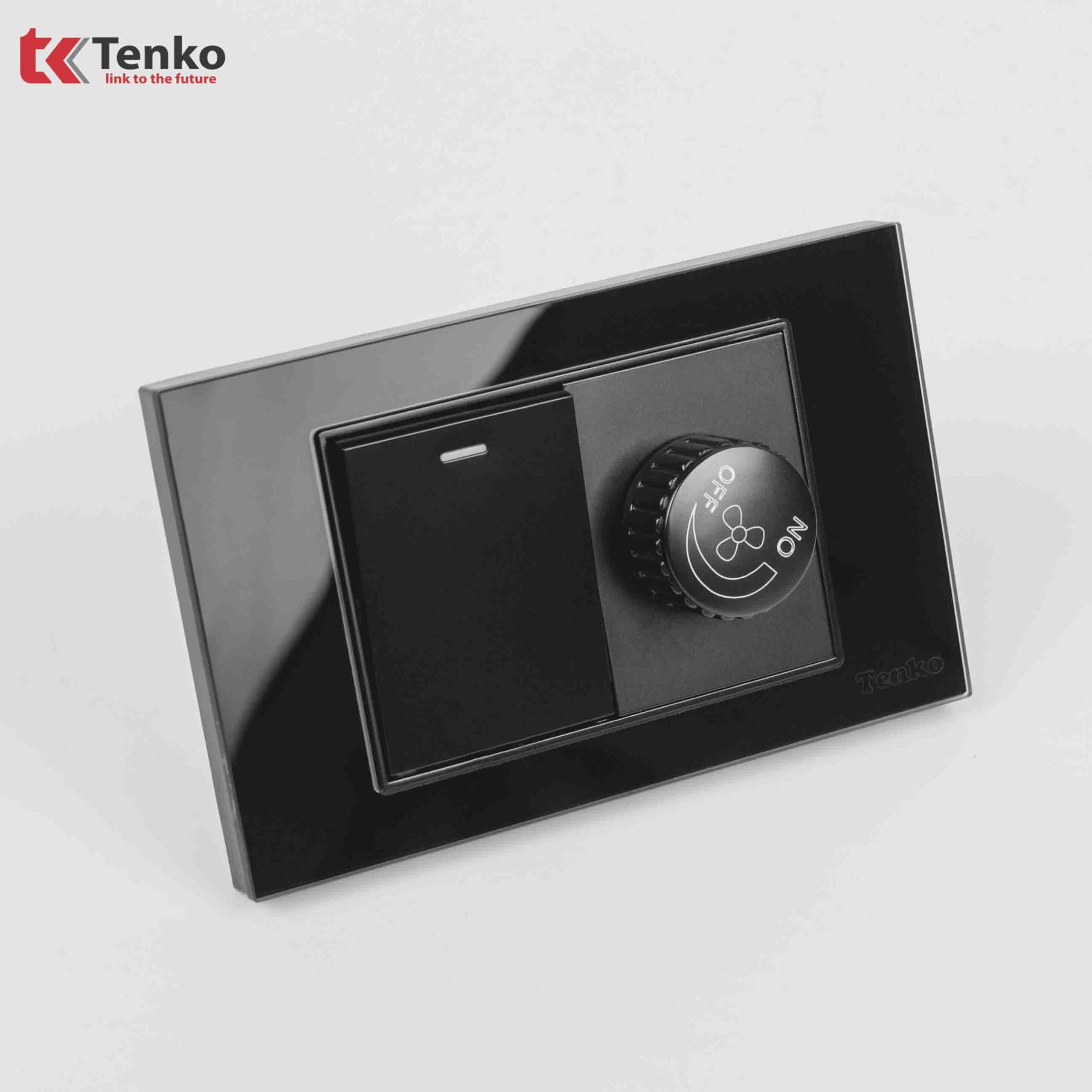 Chiết Áp Quạt Âm Tường+Công Tắc Mặt Kính Cường Lực Cao Cấp TENKO TK-C18-087 ĐEN