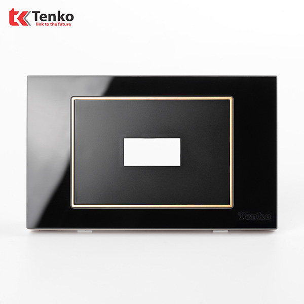 - Màu đen viền vàng tinh tế, chất liệu kính cường lực cao cấp. Mặt Tenko được sản xuất đạt tiêu chuẩn IEC Nhật Bản, lắp đặt bằng cách bắt vít. Phù hợp với mọi không gian trong gia đình, phòng họp, khách sạn…