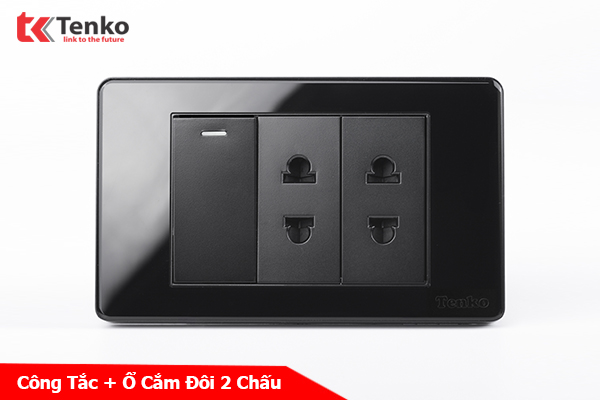 Mặt Đôi 2 Chấu Kèm Công Tắc Âm Tường Thương Hiệu Nhật TENKO TK-C9-025 ĐEN