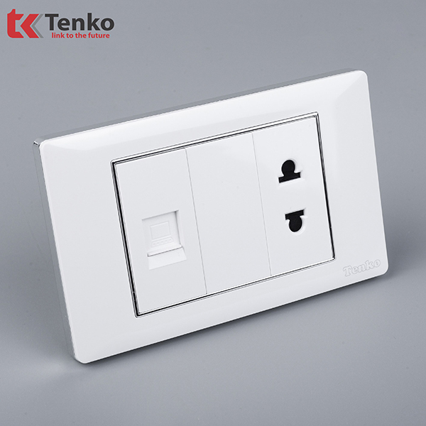 Ổ Cắm 2 Chấu Và Mạng Âm tường Cao Cấp Mặt Nhựa Trắng Viền Bạc TENKO TK-C27-076 với thiết kế đa dạng với khả năng tùy biến cao. mang lại sự hài hòa. sang trọng cho mọi không gian.