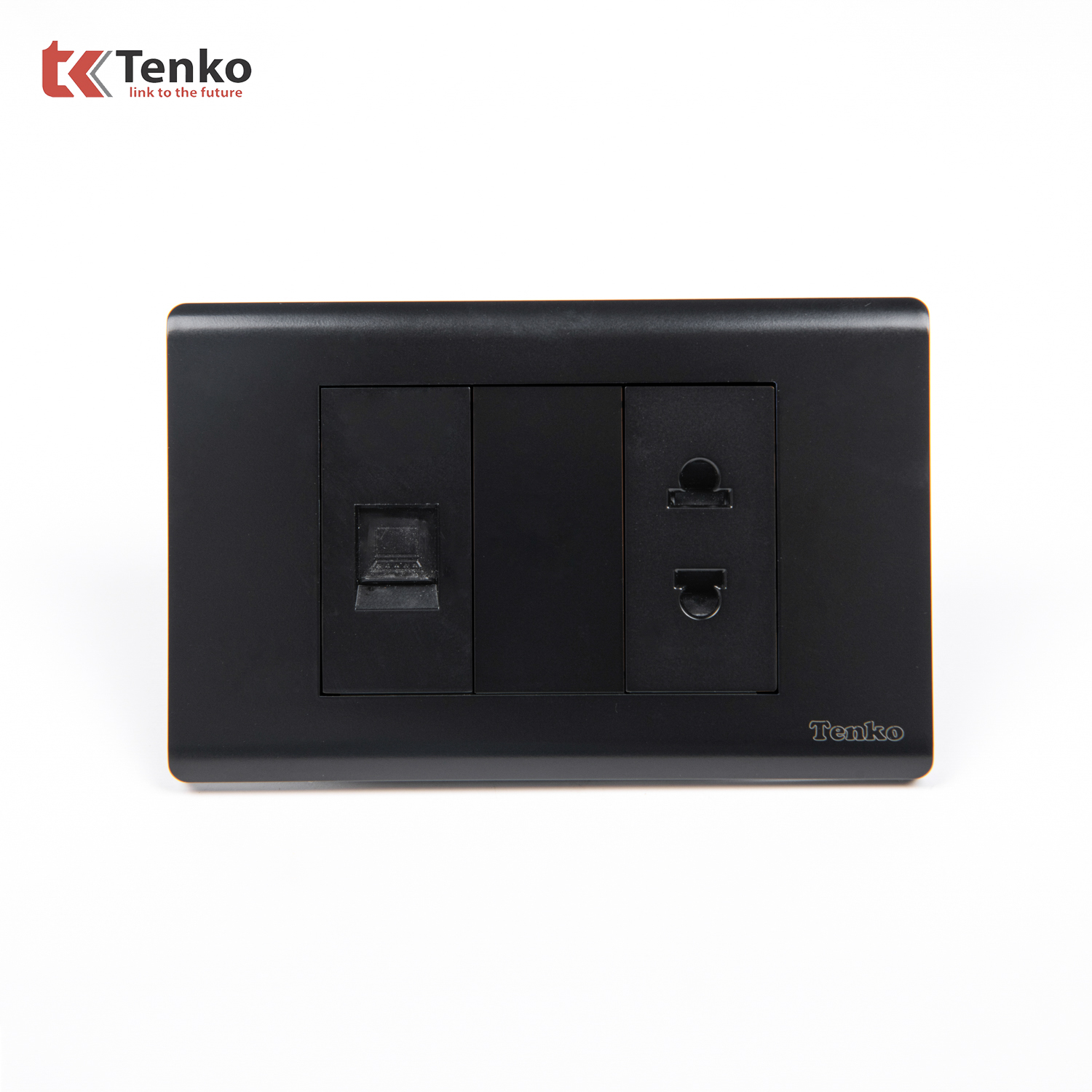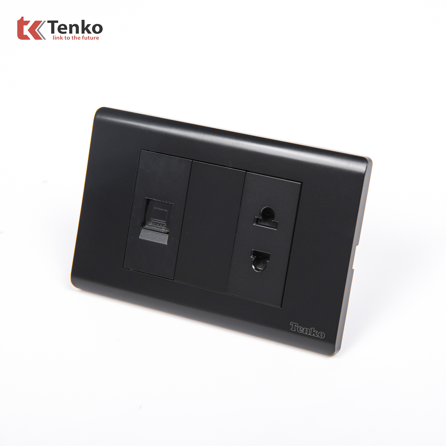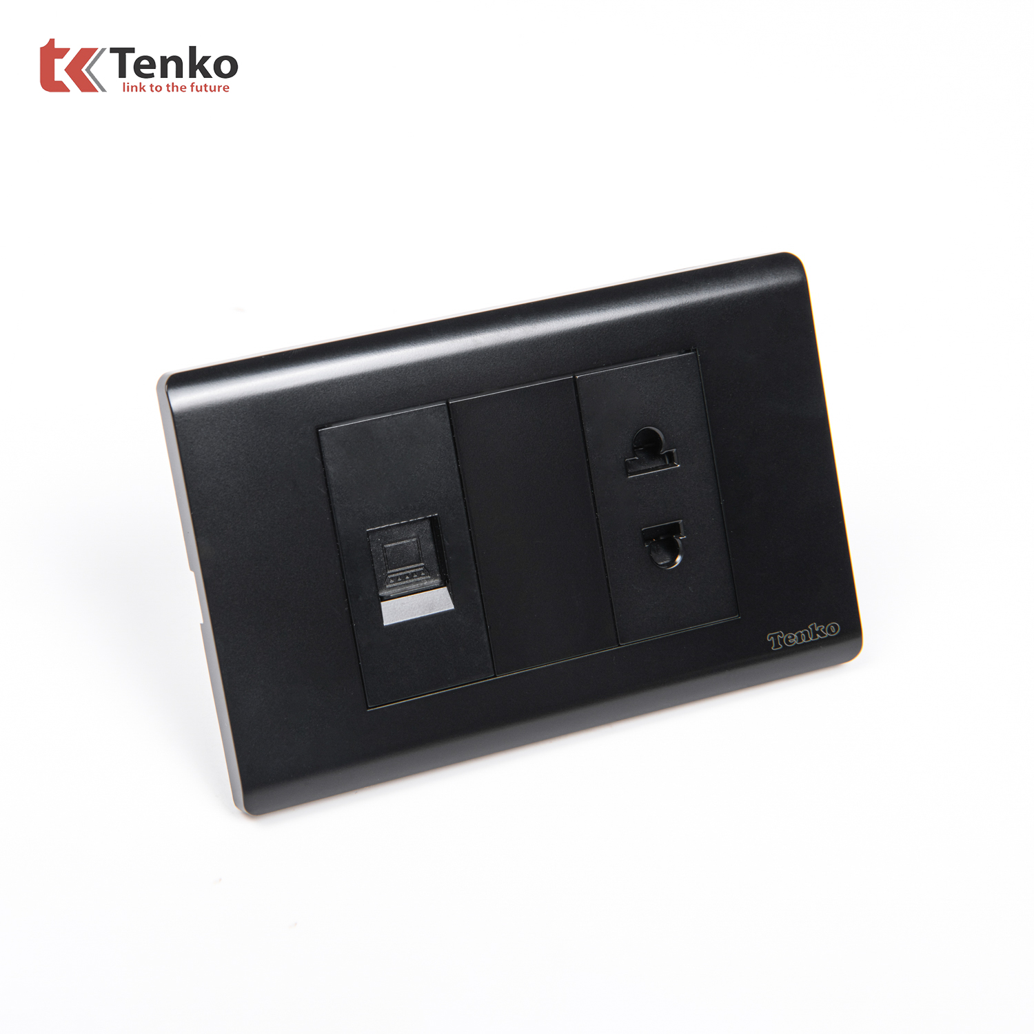 Ổ Cắm 2 Chấu Và Mạng LAN Chống Cháy Cao Cấp TENKO TK-C25-076 – Mặt Nhựa PC Đen