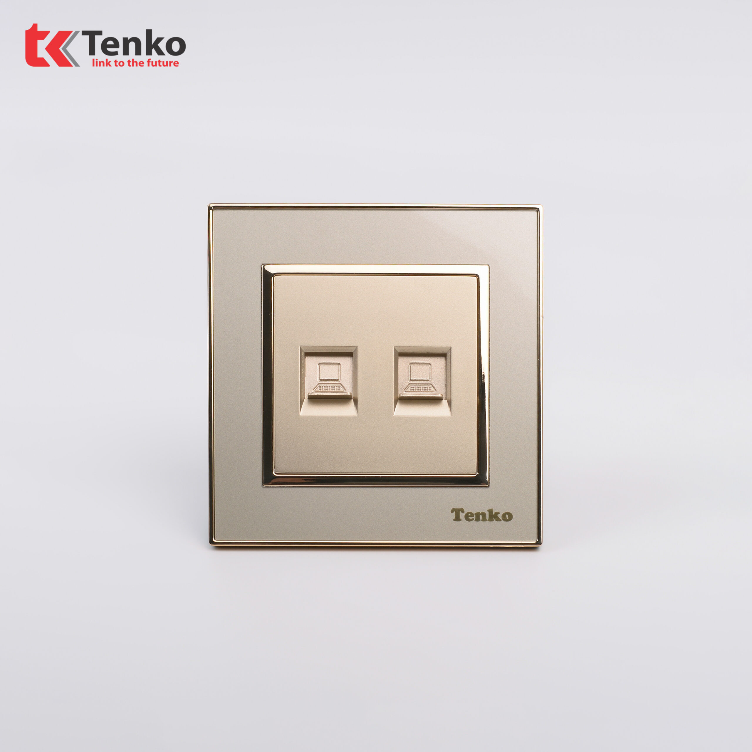 Ổ Cắm 2 Mạng LAN (RJ45) Mặt Nhựa Vàng Viền Vàng Chính Hãng Tenko TK-F66-52