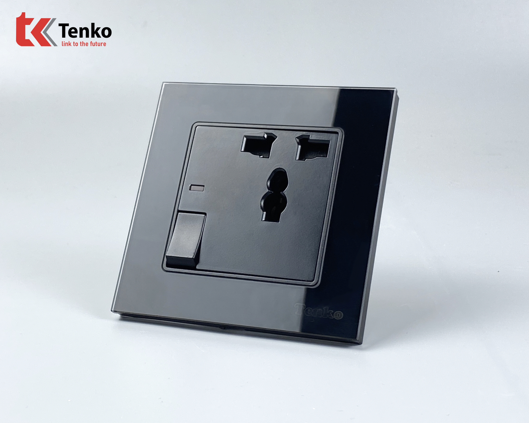 Ổ Cắm 3 Chấu Kèm Công Tắc Mặt Kính Cường Lực Tenko TK-F71D-27 Đen