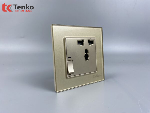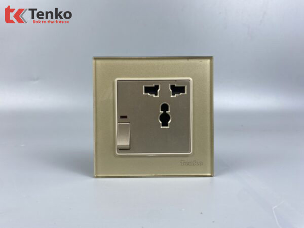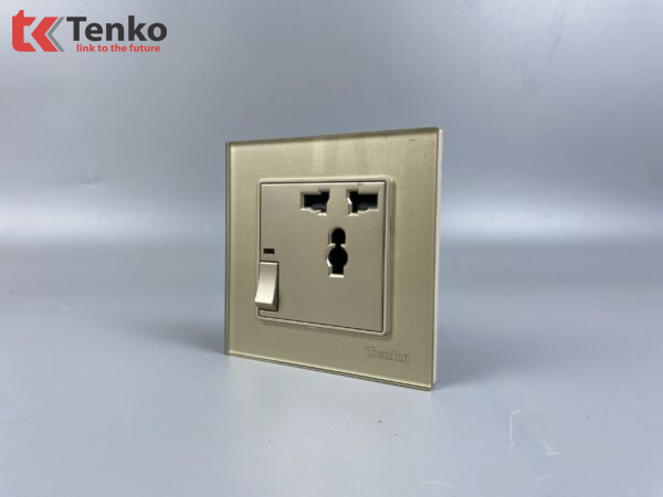 Ổ Cắm 3 Chấu Kèm Công Tắc Mặt Kính Cường Lực Tenko TK-F71D-27 Vàng
